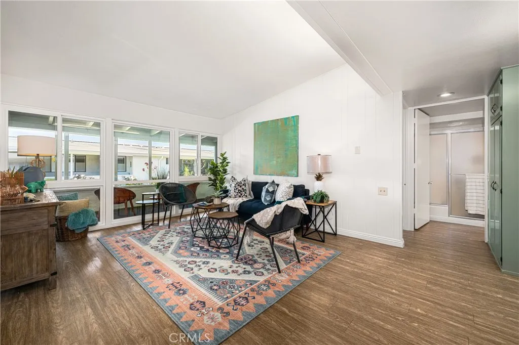 Corner unit in Mutual 2 offering flexible qualification options for prospective buyers. This well-maintained 2-bedroom, 1-bath residence is move-in ready and features a spacious wraparound patio with an additional storage unit. The interior includes double-pane windows and luxury vinyl flooring throughout, while the living room is equipped with air conditioning for added comfort. SENIOR COMMUNITY-OFFERS THE FOLLOWING AMENITIES: 9 Hole Golf Course, Swimming Pool, Jacuzzi, Gym, Table Tennis, Shuffle Board, Billiards, Pickle Ball, and Bocce Ball courts. Amphitheater, 6 Clubhouses featuring: Art Room, Sewing, Crafts, Wood Shops, Lapidary, Pool Tables, Over 200 Clubs, LWSB is a Security Guard-Gated Community. Also Library, Friends of Library Bookstore, Credit Union, Health Care Center, Pharmacy and Post Office Heat Pump. Kitchen features mutual appliances, skylight and ceiling fan. Bathroom with skylight and cutdown shower. Double pane windows. (CARPORT 23, SPOT 36).
