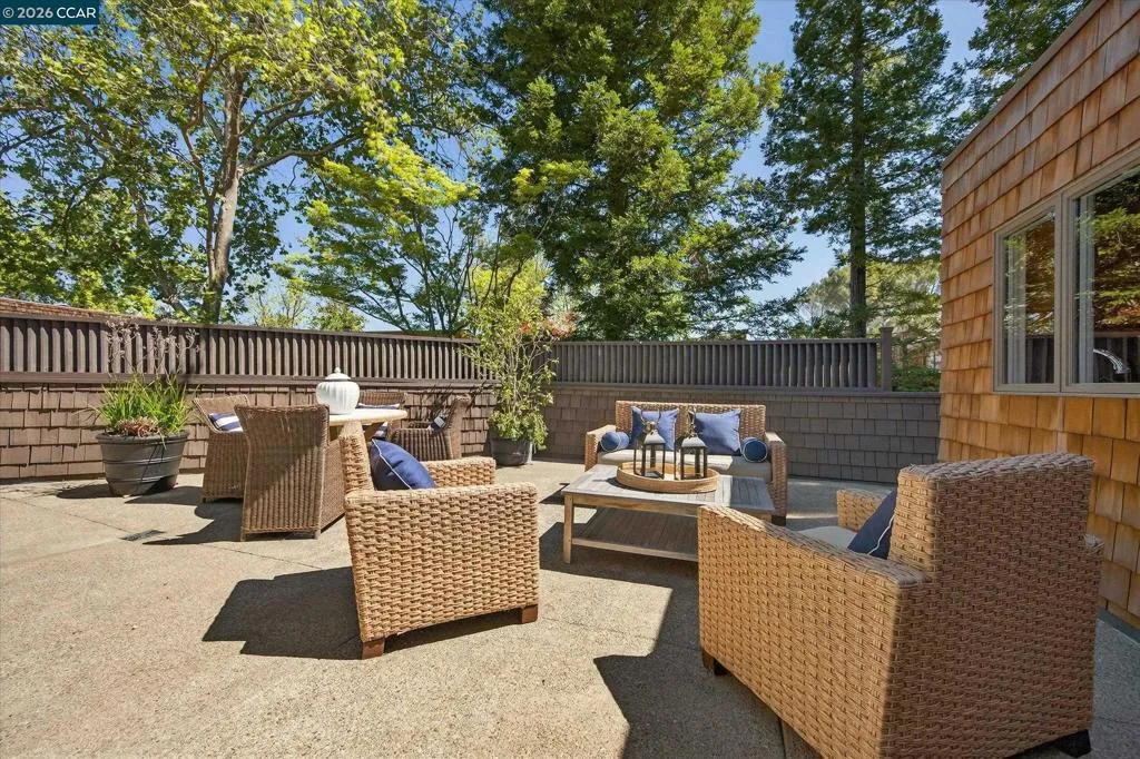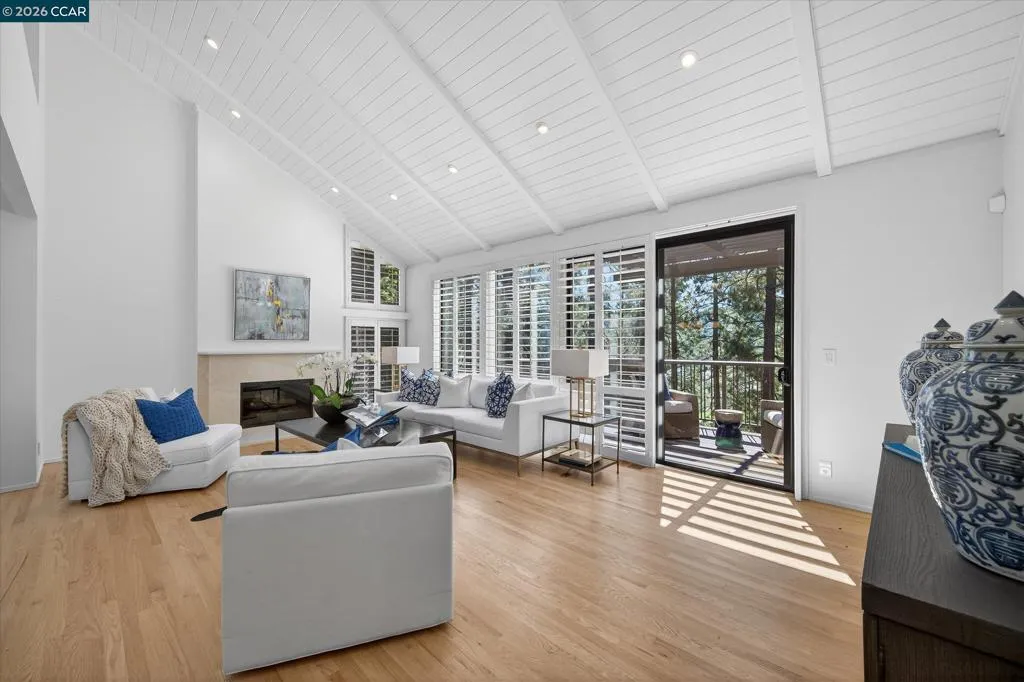 Showcasing style & quality, this level-in Orindawoods home offers an ideal setting with natural light, privacy & views. Corner location with walls of glass, high vaulted & beamed ceilings, hardwood floors throughout the main level. The thoughtfully designed & light filled floor plan is both functional & inviting. Two-car attached garage with interior access. True indoor/outdoor living. Spacious, beautifully updated kitchen with Andersen glass door to expansive courtyard patio. Living room features a modern gas fireplace with beautiful stone surround, wet bar and wall of glass to large deck. The private primary suite is a true retreat, featuring a glass French door to private deck & modern updated bath. Additional bedrooms provide flexibility for guests, family, or work-from-home needs—one ideally suited as an office with built-in desk & daybed. Oversized garage with storage loft, built-in cabinetry & 220V outlet for EV charging. Enjoy the coveted Orindawoods lifestyle, known for its tranquil setting & exceptional amenities, including pools, tennis club, manicured greenbelts, Woodhall community room & pond, scenic walking paths, BART shuttle. All just minutes from downtown, top schools, parks, library, farmer's market.