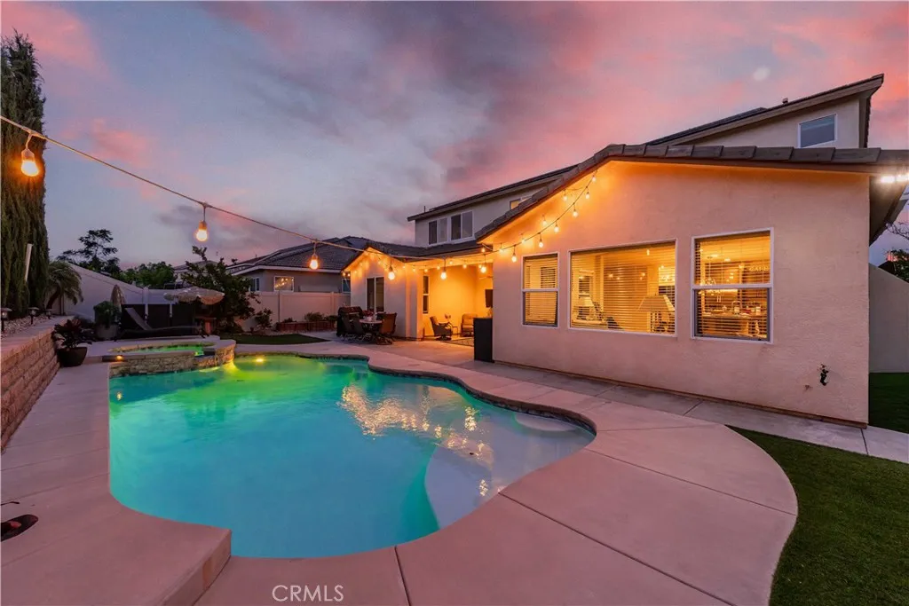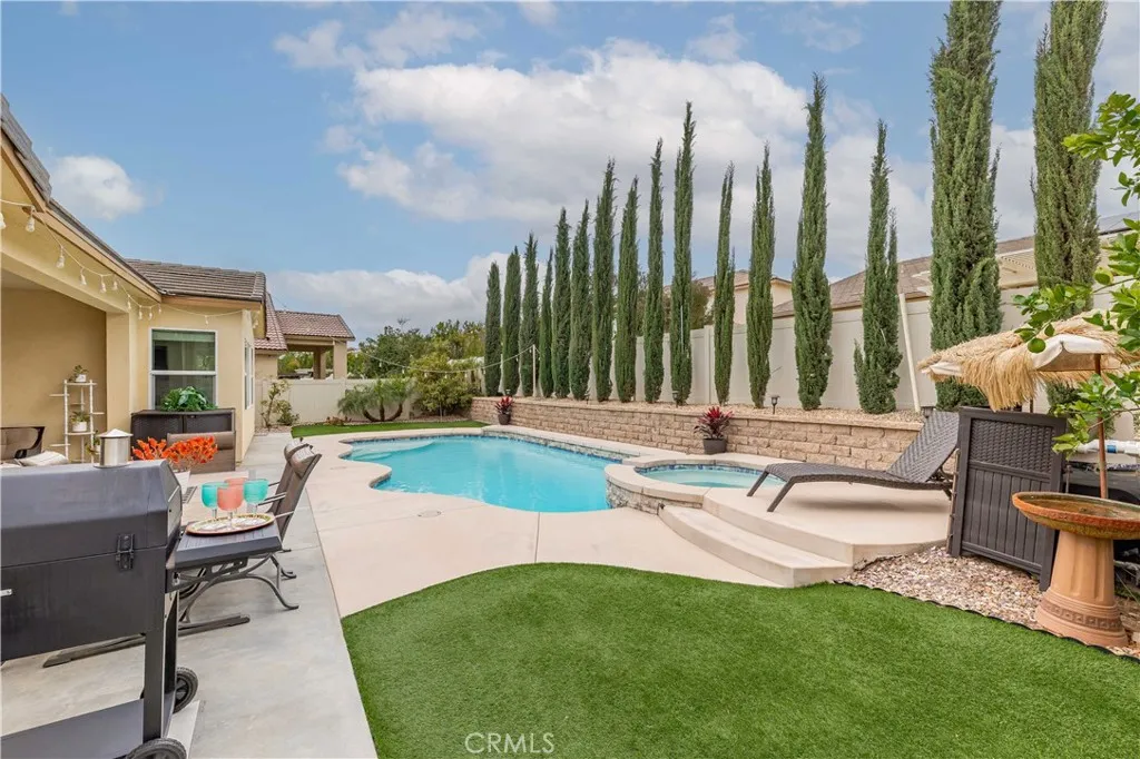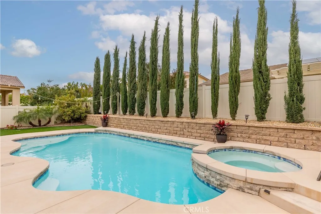 RARE opportunity in Spencer’s Crossing with a private pool, next-gen suite, and paid-off solar—homes like this don’t come up often. This spacious 5-bedroom, 3.5-bath home offers 3,199 sqft of well-designed living space in one of the area’s most sought-after master-planned communities, known for its resort-style amenities including multiple pools, parks, trails, and more. From the moment you walk in, you’re greeted by 9-foot ceilings, upgraded luxury vinyl plank flooring, and a striking staircase that creates an inviting and elevated first impression. The layout is both functional and flexible, featuring a highly desirable next-gen style junior suite on the first floor complete with its own kitchenette, full bathroom, and walk-in closet—perfect for multi-generational living or extended stays. There’s also an additional downstairs room with French doors, ideal for a home office or optional bedroom. The kitchen has been tastefully upgraded with custom cabinetry, a large center island, and built-in oven and microwave, opening seamlessly to a warm and inviting living area with a fireplace that gives the home a comfortable, lived-in feel. Upstairs, you’ll find three additional bedrooms, a spacious loft, and a well-sized primary suite. All of the bedrooms offer generous space, making the home feel open, functional, and comfortable for everyday living. Step outside to a backyard that truly sets this home apart. Designed with both relaxation and entertaining in mind, this space features a private pool and spa, a covered patio area perfect for gatherings, and a thoughtfully landscaped yard with mature fruit trees and tall Italian cypress trees that create a peaceful, private setting. Whether you're hosting family and friends or enjoying a quiet evening, this backyard delivers a rare combination of space, privacy, and usability that’s hard to find. To top it off, the home comes with paid-off solar, offering long-term energy savings and efficiency. If you’ve been waiting for a home that checks all the boxes—size, layout, location, and an exceptional backyard—this is one you won’t want to miss.