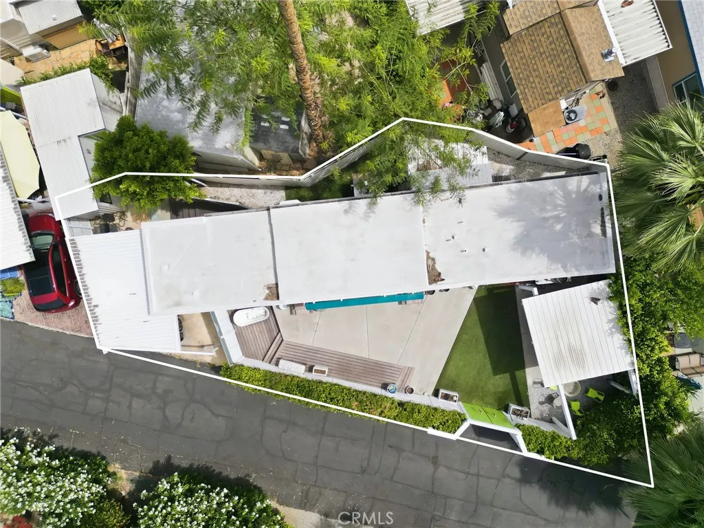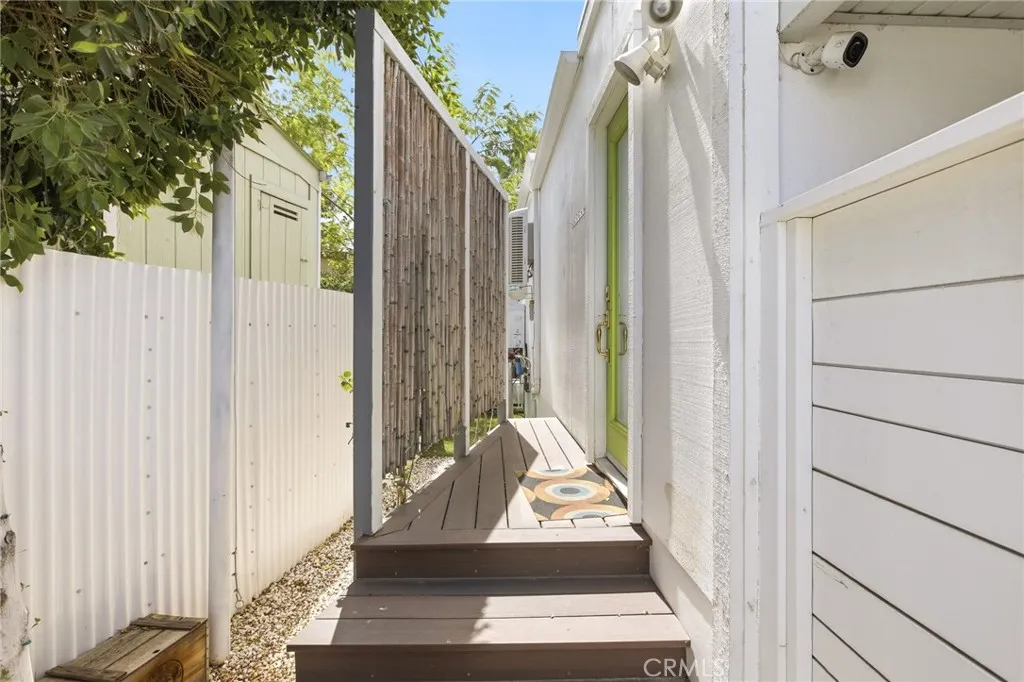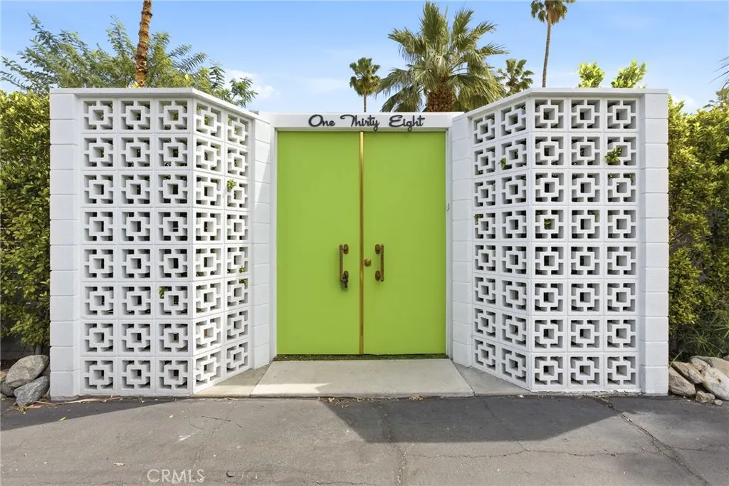 Wake up to sweeping mountain views from this charming DOUBLE-LOT RETREAT in the peaceful Warm Sands community. This thoughtfully designed home offers 690 sq ft of stylish living space with PLUS A DETACHED GUEST ROOM PERFECT FOR VISITORS, A STUDIO, OR PRIVATE WORKSPACE. The property welcomes you with a covered patio, spacious cement and wood deck, and a unique outdoor soaking tub—an inviting setting to relax and take in the desert sky. Inside, the home blends modern style with warmth, featuring hardwood laminate flooring, quartz and wood countertops, crisp white appliances with elegant gold accents, sleek cabinetry and fixtures, and ceiling fans throughout. The custom bathroom showcases beautiful inlaid tile and modern finishes that create a timeless look and feel. Warm Sands 55+ community offers a peaceful, quiet setting with nearby grocery stores, restaurants, and cafés for everyday convenience, along with bike-friendly streets, nearby schools, and easy access to parks and green spaces—making this property not just a home, but a lifestyle.