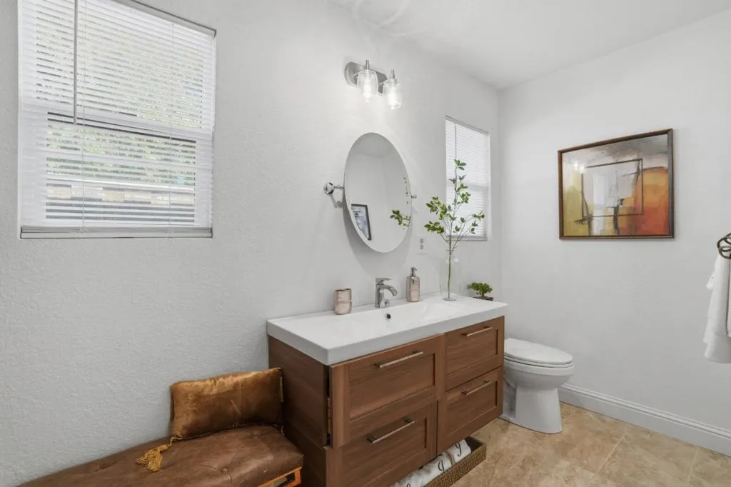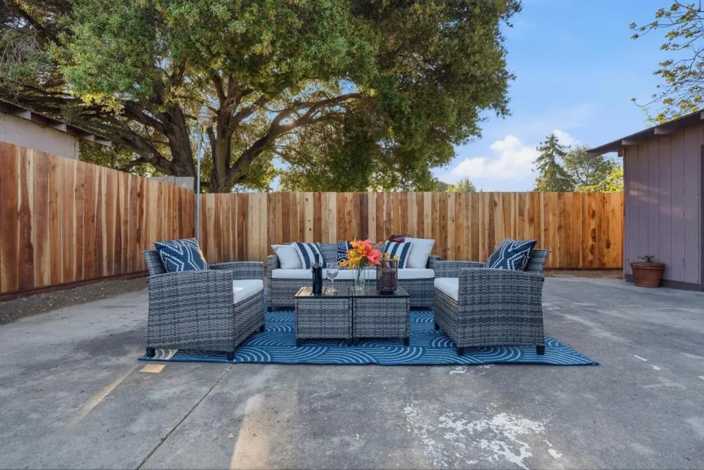 Tucked off the main road, this inviting home blends comfort, space, and modern convenience. Step inside to a sunlit living room with louvered shutters and rich honey-toned wood floors, offering flexibility for your favorite furniture setup. The adjoining family room features a charming fireplace and skylight that brighten the space year-round. The kitchen impresses with stainless steel appliances, generous counter space, and warm wood cabinetry, perfect for both casual meals and entertaining. Bedrooms are cozy with plush carpeting and ceiling fans, while the updated hall bath adds a modern touch. The spacious primary suite feels like a private retreat, complete with a stylish bathroom and a large walk-in closet. Convenient indoor laundry with built-in storage adds everyday ease. The paved front yard and detached garage make maintenance simple. Enjoy nearby Baylands Nature Preserve, Ravenswood Open Space, and easy access to Hwy 101, Stanford, Meta, and downtown Palo Altos dining and shops. A wonderful blend of value, location, and livability, ready for its next chapter.
