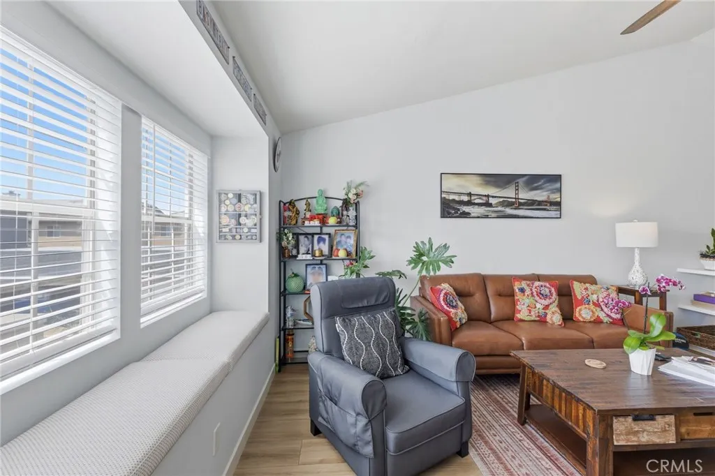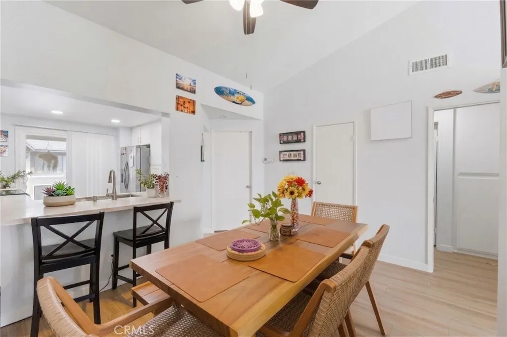 Beautifully updated upper-level 2-bedroom, 2-bathroom condo located in an interior position of the complex, offering added privacy. This well-maintained home features spacious bedrooms, two full bathrooms with recent renovations, and high vaulted ceilings that create an open, airy feel throughout. The interior showcases vinyl flooring throughout and a remodeled kitchen with modern finishes. The inviting living room flows seamlessly into the dining area, providing a functional and comfortable layout. Additional features include an HVAC system, water heater, and in-unit washer and dryer conveniently located on the balcony. The property also includes a 2-car garage. Conveniently located in Anaheim with easy access to major freeways including Interstate 5, California State Route 91, and California State Route 57, providing connectivity throughout the region. Close proximity to shopping, dining, and entertainment, including Knott’s Berry Farm.