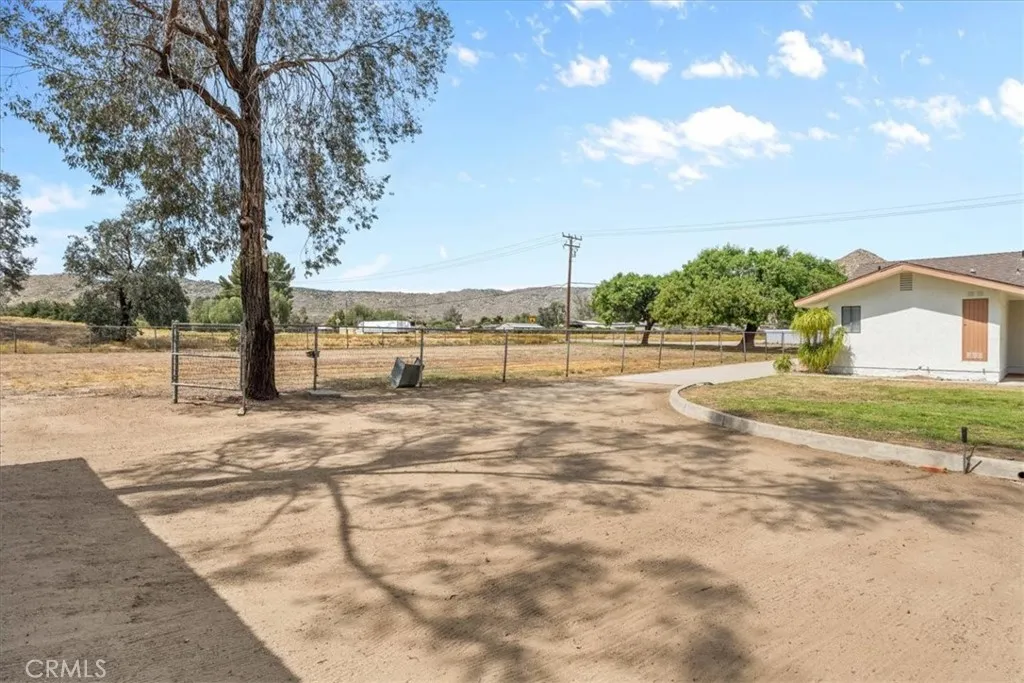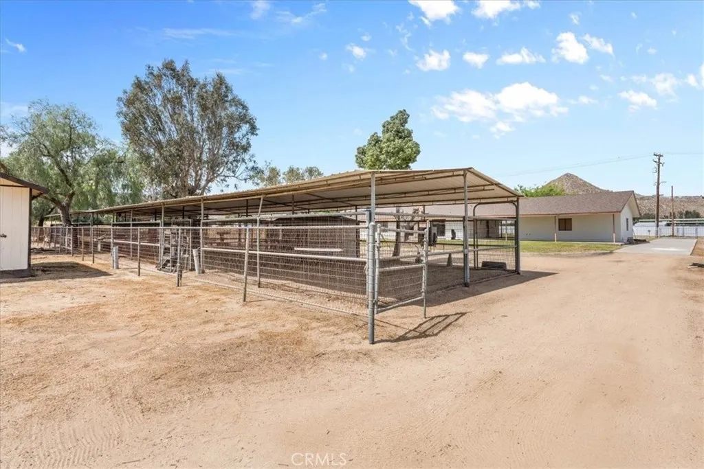 Pride of Ownership! Offered for the first time since it was built in 1980, this beautifully maintained, custom ranch-style home showcases true pride of ownership and timeless charm. Nestled on an expansive 9.55-acre lot in desirable West Hemet, this impressive property features 3 spacious bedrooms, 2.25 bathrooms, and approximately 2,525 square feet of living space. The thoughtfully designed floor plan offers both comfort and functionality, perfect for everyday living and entertaining. The home boasts a well-appointed kitchen with ceramic countertops, double ovens, a 5-burner cooktop, and a built-in microwave. Enjoy generous living areas including a huge living room and a separate family room with a cozy wood-burning fireplace, accented by beautiful wood-beamed ceilings and custom wood wall finishes. Two double glass doors provide seamless access to the backyard, enhancing indoor-outdoor living. Additional interior highlights include: Spacious indoor laundry room Large primary suite with dual sinks New carpeting throughout Fresh interior and exterior paint New central A/C system Abundant natural light and upgraded lighting fixtures Decorative textured ceilings Ample cabinetry and storage throughout The exterior is equally impressive, featuring: Detached 3-car garage Enclosed horse barn – ideal for equestrian use or additional storage Extensive covered RV parking with ample space for trailers and recreational vehicles Two additional storage structures The property is fully fenced and gated, offering privacy and security, with two double-gate entrances equipped with automatic openers, allowing for convenient circular driveway access. Disclaimer: All information provided is deemed reliable but not guaranteed. Buyers and their agents are advised to independently verify all information, including zoning, permits, and intended use.