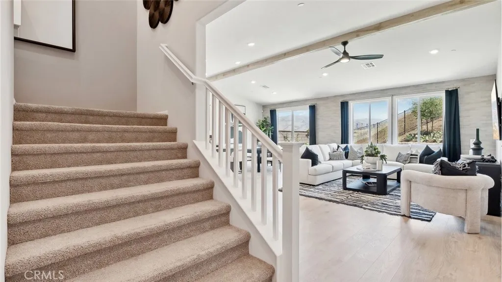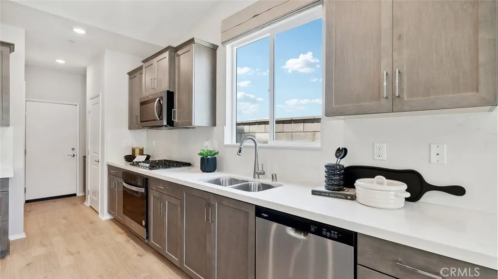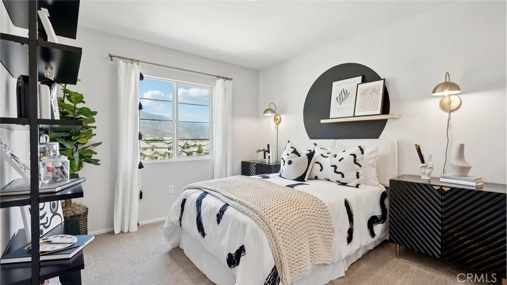 This is a uniquely designed Plan 2,537 square foot home with a Tuscan façade that features the primary bedroom with ensuite, a guest bedroom with full bathroom, and the laundry room all downstairs! A wide entry leads to an open concept floor plan with a Great room that flows to the dining area and island kitchen with Quartz counter tops, a full backsplash, stainless steel appliances, and a pantry closet. The laundry room is conveniently located just behind the kitchen. The downstairs primary bedroom comes with a walk-in closet and dual vanity sinks in the bathroom. Upstairs there is a large Bonus room, 3 bedrooms (one with a walk-in closet) and a full bathroom. There is Alto (Gray) shaker-style cabinetry throughout and the buyer has time to select flooring. This truly modern home has all the Smart Home features you would expect, solar is installed, and a direct-access 2-car garage pre-plumbed for an electric car. The front yard is fully landscaped and irrigated. The community is nearby local shopping, dining, entertainment, and freeway access. This home is anticipated to be ready for move-in mid-July 2026.
