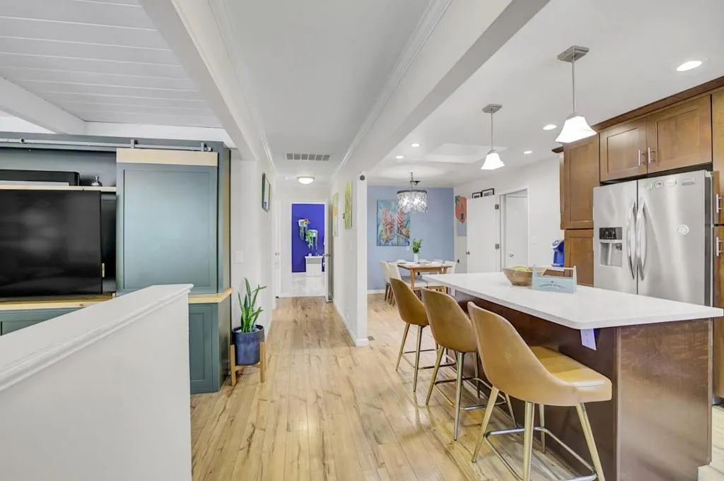 Welcome to one of the best values in Scotts Valley, offering the comfort and privacy of a single-family home with **no monthly HOA fees**. This thoughtfully designed home features an inviting living room with a statement ceiling, built-in entertainment center, and a cozy fireplace. The open layout flows seamlessly into a well-appointed kitchen with stainless steel appliances, solid surface countertops, and a generous island, perfect for everyday living and entertaining. Three well-sized bedrooms and updated bathrooms provide comfortable living, while the primary suite offers direct patio access and a stylish, spa-like ensuite. Step outside to a private backyard retreat featuring a well-maintained above-ground pool and a convenient outdoor shower, perfect for rinsing off after a swim. The home also includes a two-car garage plus a rare third parking space. The beautifully landscaped front and back yards are ideal for anyone who enjoys gardening. Set on a welcoming, neighborhood-friendly street within the desirable Scotts Valley School District, and with easy access to Highway 17 and just 10 minutes to Santa Cruz and 20 minutes to Silicon Valley, this home truly lives like a single-family residence, without the extra fees.