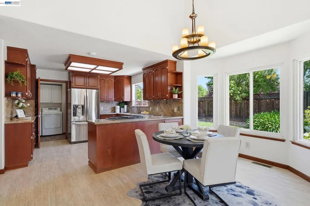 Beautiful Custom home located in the private gated Woodland Estate area. 4 larger bedrooms (or 3 plus office), 3.5 bath and 2099 sf of lush living space! True formal entry with private office entrance. Rich hardwood floors, upgraded tile and plush carpet. Enjoy the spacious kitchen that features granite countertops, gas range and cooktop, quality cabinetry, and a functional layout ideal for both everyday or entertaining. A main level laundry room & 1/2 bath with a exterior door for swimmers or gardeners. The vaulted ceilings and atrium provide wonderful natural lighting throughout. Exceptional versatility with a large comfy basement complete with a pool table & bar area and extensive storage—perfect for recreation, hobbies, or multi-use living space. One of the standout features is a stunning glass-enclosed sunroom, offering a bright and tranquil indoor-outdoor experience year-round. This well designed space is not included in the square footage, providing added value and lifestyle flexibility for relaxing or entertaining. Enjoy the Pool with waterfalls and landscaping, large side yard, nice front yard and welcoming entry. A rare chance to own a custom home with unique architectural features, flexible living spaces, and exceptional indoor-outdoor appeal in Livermore.