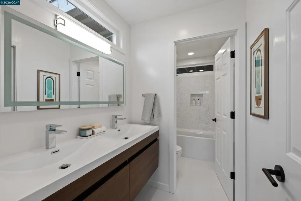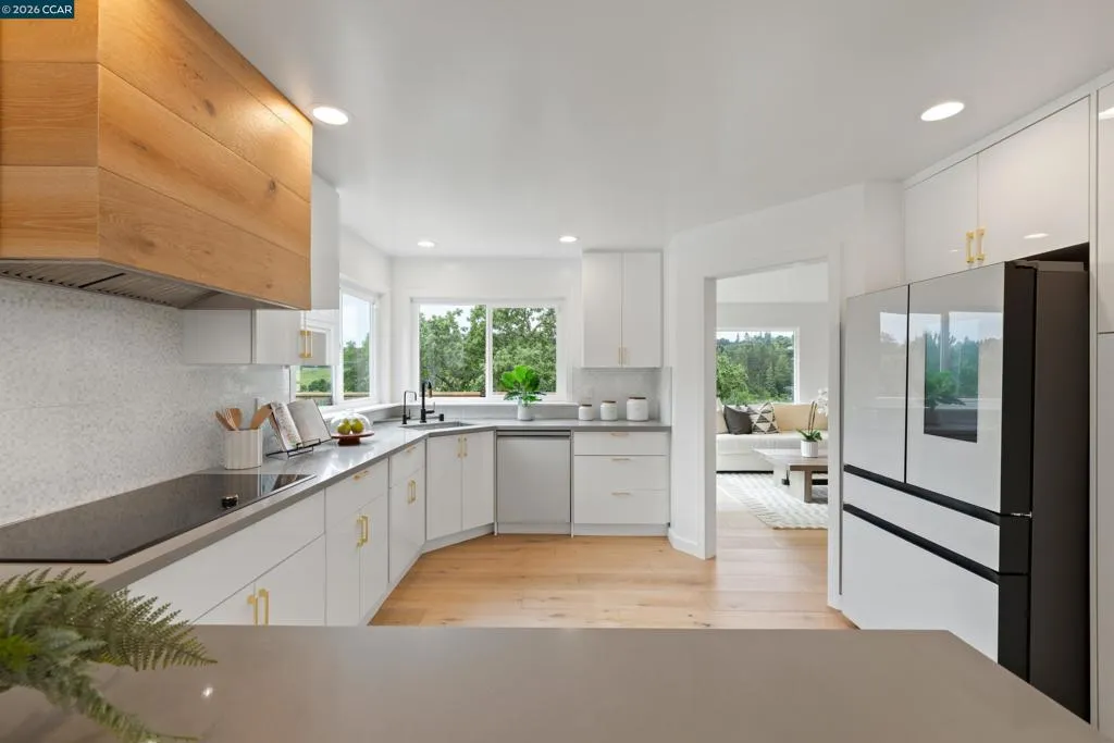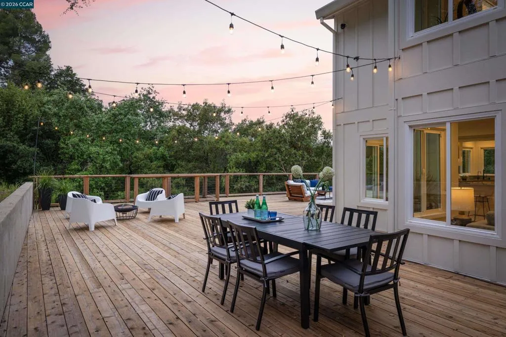 A fully reimagined, modern gated residence showcasing exceptional updates, seamless design, and sweeping views from nearly every room. Expansive windows fill the home with abundant natural light, creating a bright, open, and inviting atmosphere. Featuring 5 bedrooms, 4.5 bathrooms, and approximately 3,849 square feet, the flexible floor plan is both functional and refined. A beautifully updated kitchen and great room anchor the home for everyday living, while a spacious living and dining room provide an ideal setting for entertaining. The oversized primary retreat offers a true escape, complete with a stunning walk-in closet. Access to the expansive two-story decks create effortless indoor-outdoor living. White oak wide-plank engineered wood floors run throughout, complemented by remodeled kitchen and bathrooms, a finished garage, and high-end smart home features. Over 40 owned solar panels with three Tesla Powerwall batteries provide impressive efficiency. A trail at the base of Wanda Lane offers a 1.1-mile walk/ride to downtown Orinda and BART. Set on approximately 1.29 acres, the property offers rare scale and versatility. Ideally located near Hwy 24/680, top-rated Orinda schools, shopping, dining, and recreation, this home blends modern living with privacy.