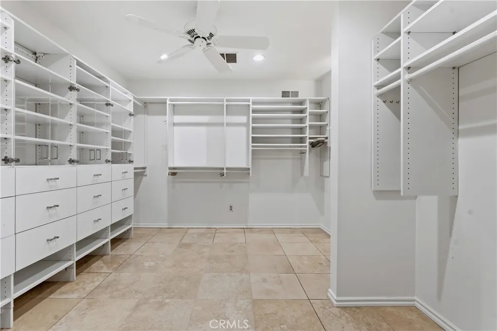 Sprawling single story approx. 4,000 SF gated estate located on a 19,000 SF flat lot South of the Boulevard in desirable Vista De Oro. On the market for the first time in over 30 years, the property sits at the end of a cul-de-sac behind an automatic security gate with separate pedestrian access. The spacious front yard has rolling front lawn with drought resistant landscaping, mature trees, & long driveway that leads to the 3-car attached garage with storage & direct access. A meandering brick pathway leads to the covered front porch with double door entry. Step inside to find a grand foyer with wood beamed tray ceiling, coat closet, & convenient guest powder bathroom. Formal living room has brick fireplace, wood product walls, crown moldings, & French doors that open to backyard. Separate family room features vaulted wood beamed tongue & groove ceiling, brick fireplace, built-in display & storage cabinetry, & French doors that open to the yard. Formal dining room has buffet counter with custom cabinetry, gorgeous parquet wood floors, and large picture windows overlooking the exterior. Chef’s upgraded kitchen features large center island, stainless appliances including Miele double ovens, Subzero refrigeration, Viking 6-burner stove + grill, two warming drawers, walk-in pantry, & separate breakfast room with built-in bench seating and expansive storage cabinetry with counter space. Grand primary suite boasts double door entry, French doors that open to the backyard, built-in storage, two bedroom-sized walk-in closets with custom built-ins, and luxurious en-suite upgraded bathroom with dual vanities + separate makeup counter, stone counters, large walk-in shower with dual bench seats & raindrop shower head, & separate spa tub with jets. Attached to the primary is a massive bonus room providing ideal flex space for office/gym/5th bedroom featuring French doors that open to the yard, large walk-in closet, and built-in desks with storage. There are three additional secondary bedrooms, two share a large bathroom with walk-in shower and the third has access to its own bathroom with shower & tub. There is also a laundry room with storage and exterior access. The entertainer’s backyard boasts swimming pool, large covered pergola for outdoor dining, separate Saltillo tiled patio with BBQ center, and lush landscaping with grass lawns and fruit trees. Adjacent to Westfield Topanga Mall/Village, Warner Center, parks/hiking trails, & easy access to the beach/freeways.