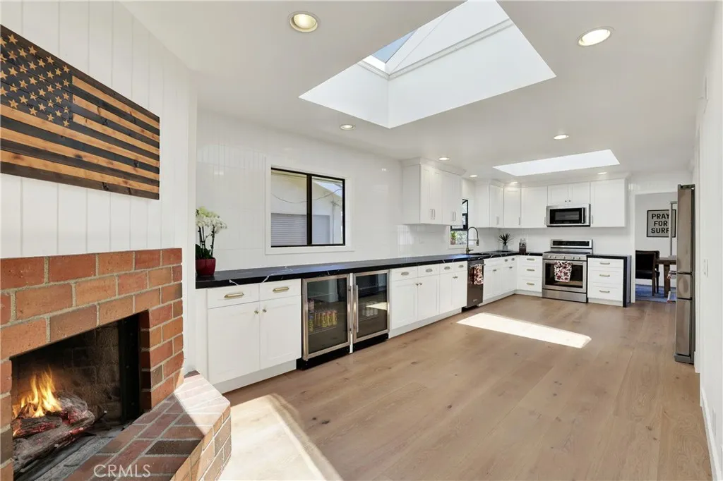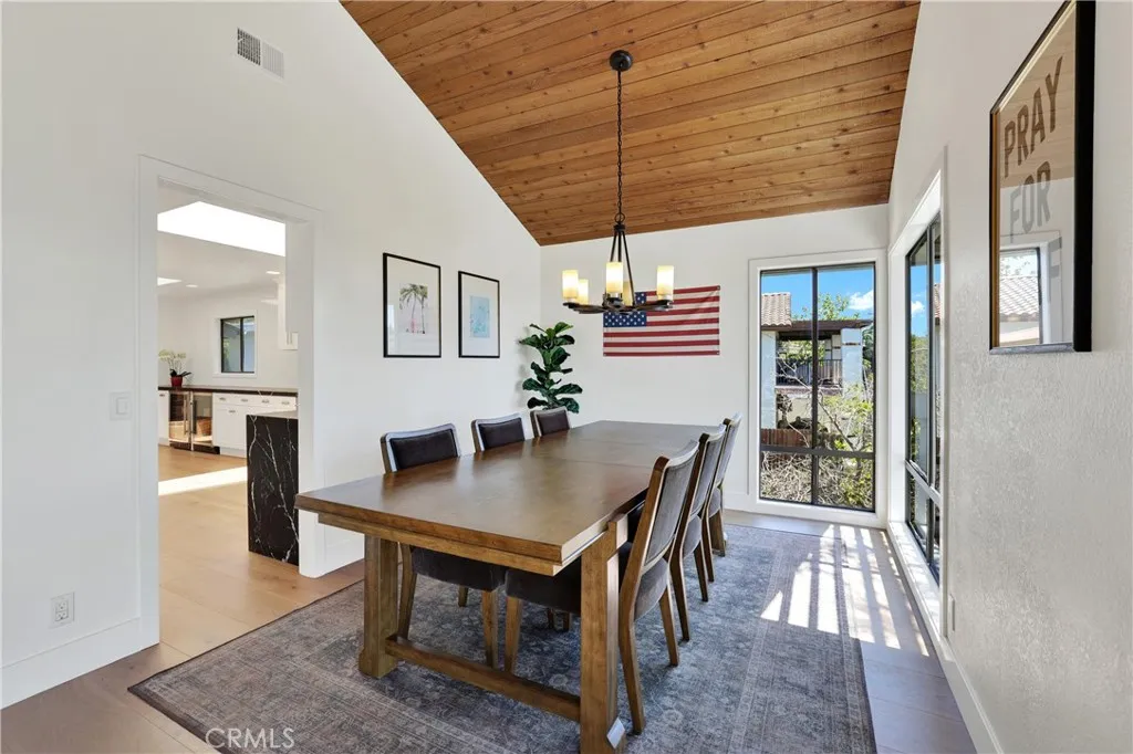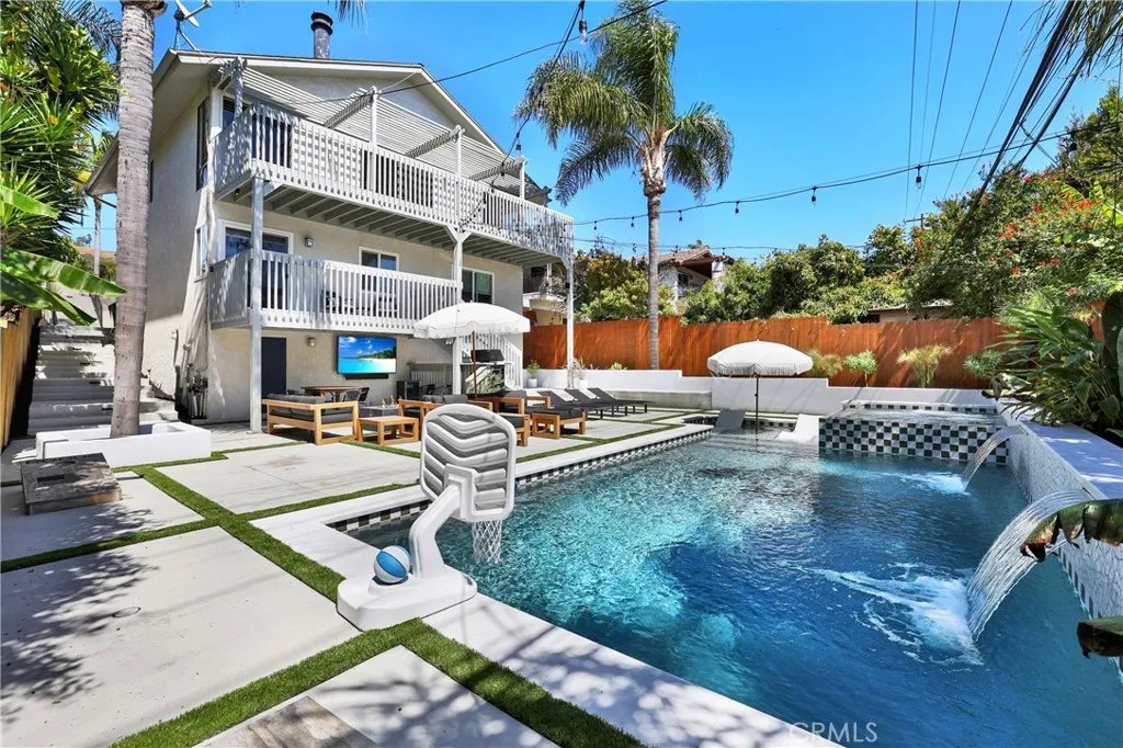 OCEAN VIEWS, LOCATION, POOL, & RENOVATIONS! Located in the desirable Capistrano Beach, this home is completely reimagined and elevated into a refined coastal retreat where every detail has been thoughtfully curated. Inside, the home blends warmth and modern design with vaulted wood ceilings, luxury wide plank flooring, and a bright, open layout filled with natural light. A striking floor to ceiling brick fireplace, framed by rich wood paneling, serves as a warm architectural centerpiece to the living space. The kitchen is beautifully updated with custom cabinetry, sleek finishes, and stainless steel appliances, creating a clean and elevated space that flows effortlessly into the main living areas and out to an ocean view deck, perfect for sunset dinners and relaxed coastal living. The true centerpiece is the backyard, designed to feel like a private resort. A stunning pool and spa with custom tile work, Baja shelf seating, and ambient lighting is surrounded by lounge areas, oversized umbrellas, a fire feature, and string lighting that sets the tone in the evenings. Every inch of the outdoor space has been intentionally designed for both entertaining and everyday enjoyment. Turn key beach home, with a lifestyle ready to be experienced. Text agent for brochure.