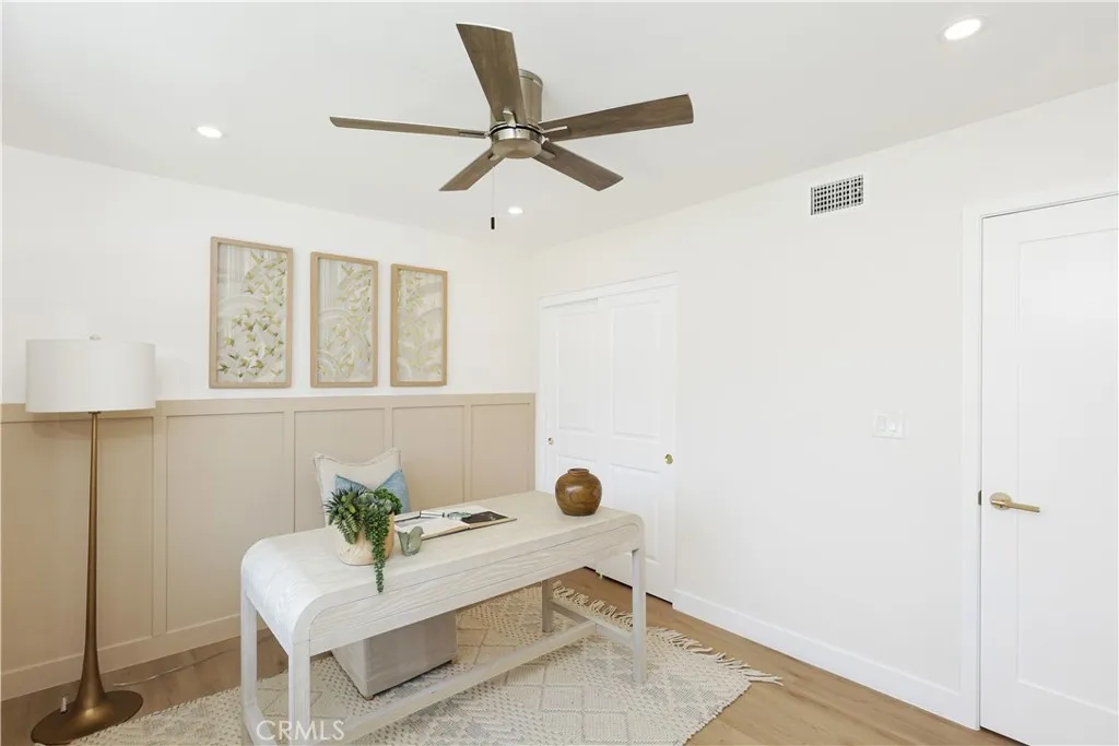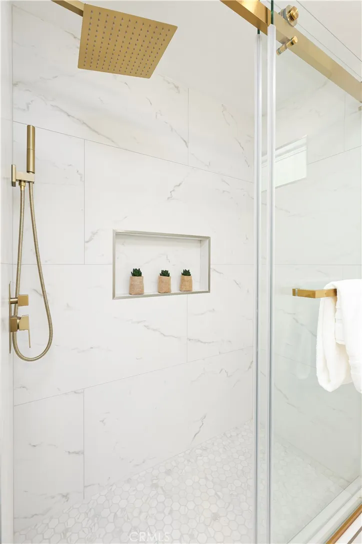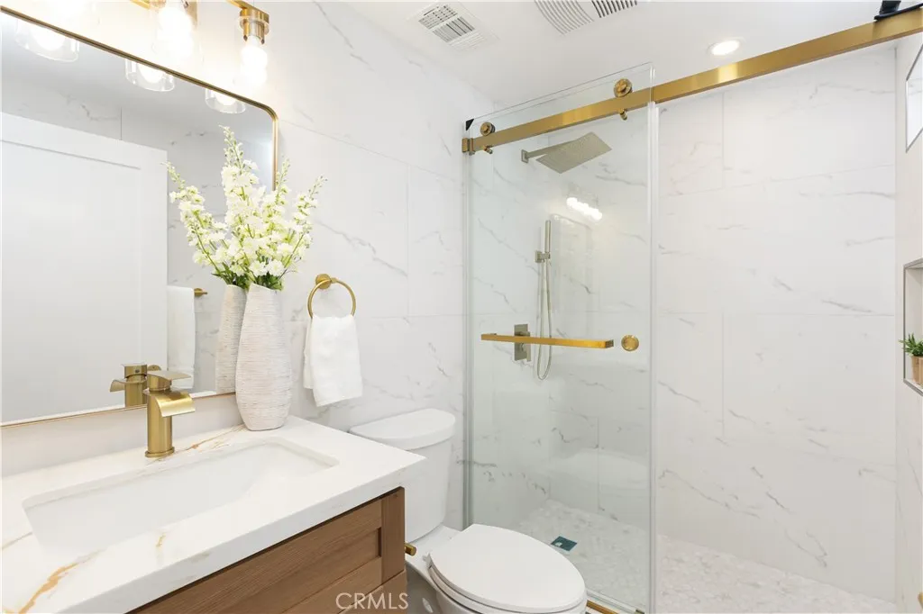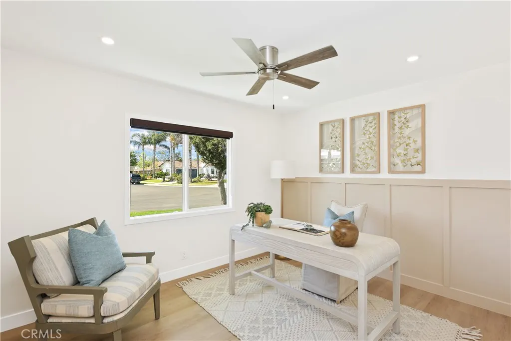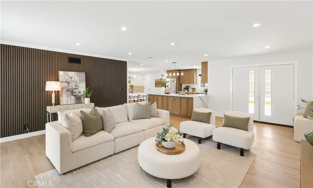Do Builder and Design is pleased to present their newest renovated home in a beautiful Costa Mesa neighborhood. All thought was taken into the reformation of this home. There is a beautiful double entry door leading into an open concept living room with wainscotting and panel walls. An original rock fireplace centers the room. New flooring throughout. A kitchen open to the living room and dining area. All top end appliances including a refrigerator, water softener under the sink, gas burner stove and integrated microwave vent above. Extra storage with access from both sides of the counter peninsula provide easy access and functionality. Two bedrooms off the dining area with en suite bathrooms and walk in closets. Two other bedrooms on the west side of the home with a shared new hall bathroom. The large two car garage has new epoxy flooring, drop stairs to the attic, a water softener, forced air heater with central AC unit and stacked washer and dryer too. New gate faces the front providing access to the huge backyard. Ask about expansion possibilities for the primary bedroom on the east side and/or a detached ADU in the rear - plans and contractor are available.