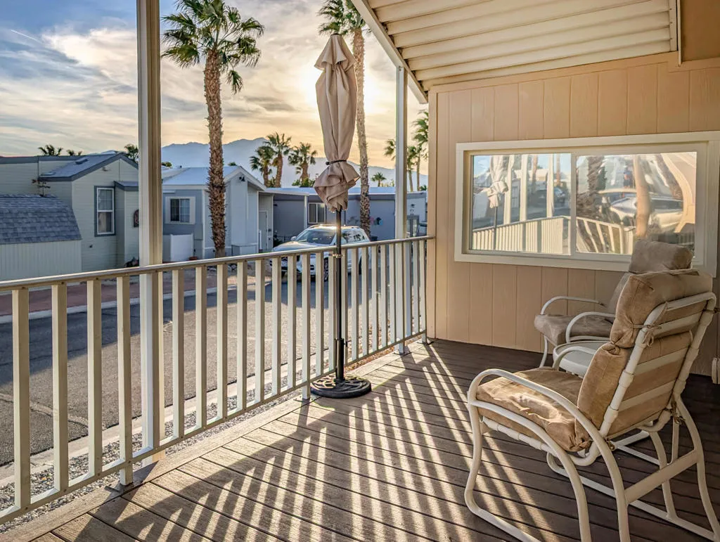 Charming and well-appointed 2001 Fleetwood Park Model home is now available in the 55+ Caliente Springs Resort. The resort offers amenities such as a hot mineral-fed pool and spas, a 9-hole golf course, a fitness center, laundry facilities, and a library. This property includes ~600 sq. ft., a 1 bedroom, 1 bathroom home with wood flooring throughout, upgraded cabinets and counters, ample storage, and views of San Jacinto and the Little San Bernardino Mountains from inside the home and on the covered deck. This home is suitable for either a seasonal getaway or full-time living. The community is very active and involved. Please note that the lot is not owned; space rent is $673.
