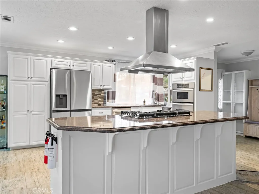 Welcome to an extraordinary single-story lakefront estate in the prestigious Spring Valley Lake community of Victorville, where luxury, efficiency, and breathtaking waterfront views come together seamlessly. Perfectly positioned on Spring Valley Parkway, this exceptional residence offers an exclusive setting designed for refined living and effortless recreation. Ideally situated beside one of the lake’s most sought-after fishing spots, this property delivers a rare lifestyle advantage—enjoy peaceful mornings casting a line just steps from your backyard and unwind with stunning sunset views across the water. This beautifully upgraded home showcases custom finishes throughout, including a remodeled chef’s kitchen featuring quartz countertops, custom soft-close cabinetry, designer tile backsplash, stainless steel appliances, and an oversized island ideal for entertaining. The open, light-filled floor plan is enhanced by expansive panoramic windows that frame the lake, while luxury vinyl plank flooring flows seamlessly throughout the main living areas, complemented by upgraded baseboards and modern fixtures. Additional enhancements include energy-efficient solar (buyer to verify purchase or lease), upgraded HVAC, and thoughtfully updated bathrooms with contemporary vanities and finishes, offering both comfort and peace of mind. Step outside to your private lakeside retreat, complete with an expansive covered patio perfect for outdoor dining and entertaining, and your own private dock providing direct access to the lake for boating, fishing, and year-round enjoyment. Offering the convenience of single-level living with a rare blend of high-end upgrades, timeless design, and an unbeatable waterfront location, this remarkable estate is conveniently located near premier amenities, shopping, dining, and commuter routes—making it one of the most desirable opportunities in Spring Valley Lake.
