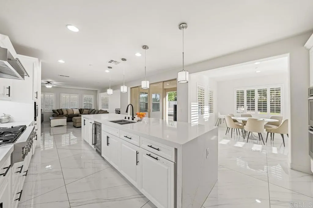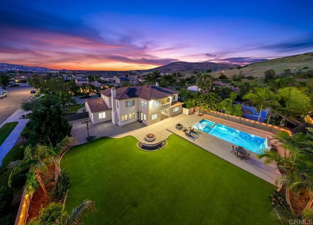 Welcome to San Miguel Ranch, where this recently remodeled residence offers a rare combination of space, privacy and everyday livability on an expansive 20,000 plus SF corner lot. A private courtyard entry leads into a dramatic foyer with soaring 20-foot ceilings and dual staircase floor plan, creating an immediate sense of scale and architectural presence. The home opens into a light-filled, open-concept layout designed for modern living, centered around a remodeled kitchen with an oversized 14-foot island that flows seamlessly into the main living areas. Each bedroom features its own en-suite bathroom, offering comfort and privacy throughout. The primary suite includes a private balcony overlooking the backyard and surrounding community. The backyard is designed for true indoor-outdoor living, featuring a newly added heated pool with Baja shelf, generous space for entertaining and enhanced privacy. Additional highlights include two fireplaces, a 4-car garage, paid solar with Tesla backup batteries and low-maintenance synthetic turf. Detached ADU plans are in process, offering future flexibility. Opportunities like this in San Miguel Ranch don’t come up often, especially for those seeking space, privacy and lifestyle, all near parks, scenic trails, top-rated schools and with convenient access to nearby dining and the 125 freeway.