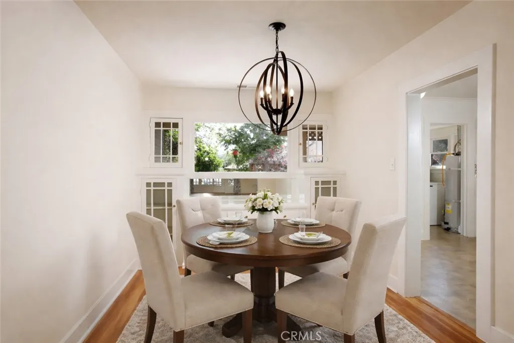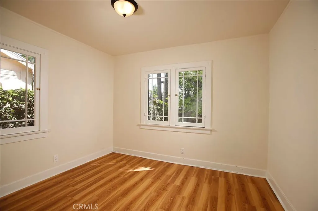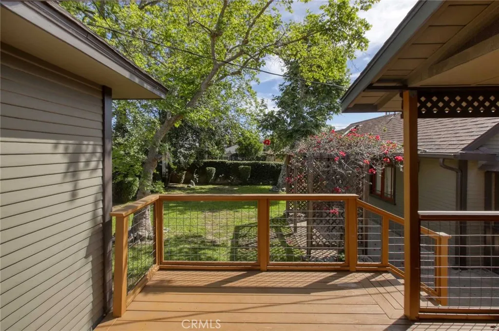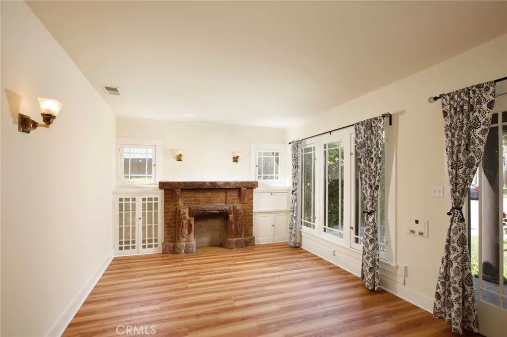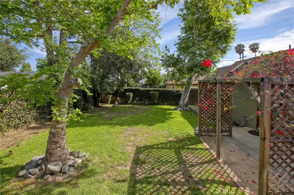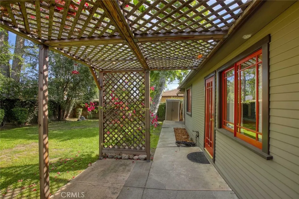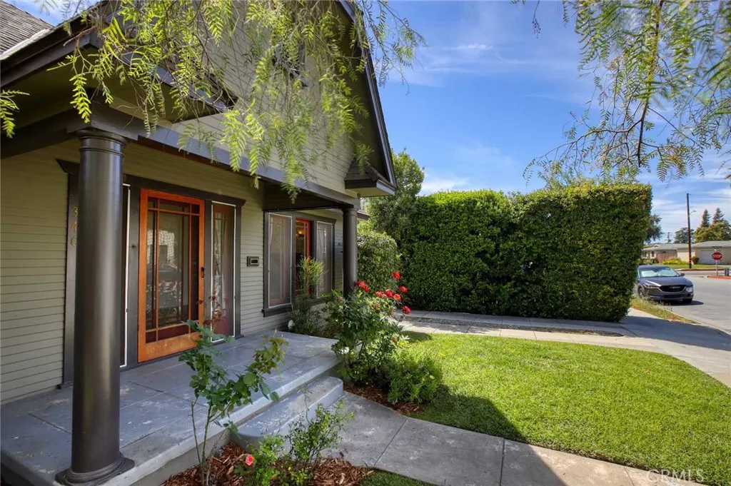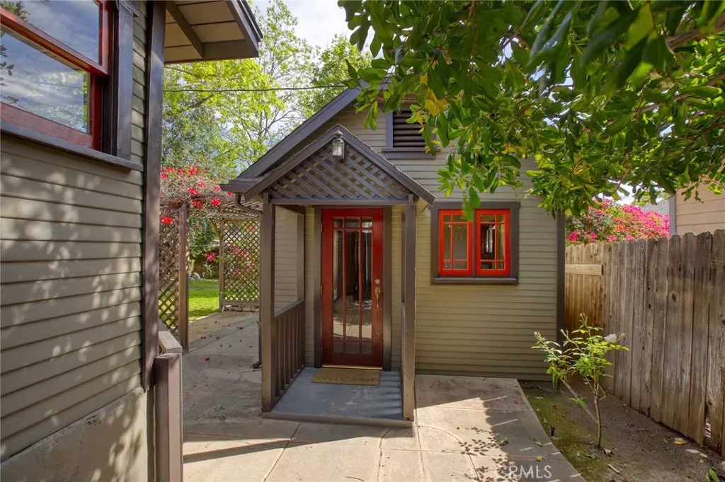 Charming 1925 Craftsman inspired design with exceptional curb appeal, ideally located just moments from vibrant downtown Monrovia. Step into a welcoming living room featuring a decorative fireplace and an arched doorway that leads to a formal dining room complete with classic built-in cabinetry. The updated kitchen includes an eat-in area and blends modern convenience with timeless style. Two bedrooms and a full updated bathroom are located off the hallway. Additional features include window casings, central air and heat, luxury vinyl flooring, a dedicated laundry room, and abundant natural light throughout. Custom deck overlooks the lush backyard filled with mature trees, offering a private and serene outdoor retreat. The craftsman inspired design extends into the guest unit as well. The guest unit offers one bedroom with vaulted ceilings, ceiling fan, a full bath, a kitchenette, providing flexible living options. A storage room is conveniently located at the rear of the property and is connected to the guest unit. A unique opportunity to own a character-rich home with added space and versatility in a prime Monrovia location.