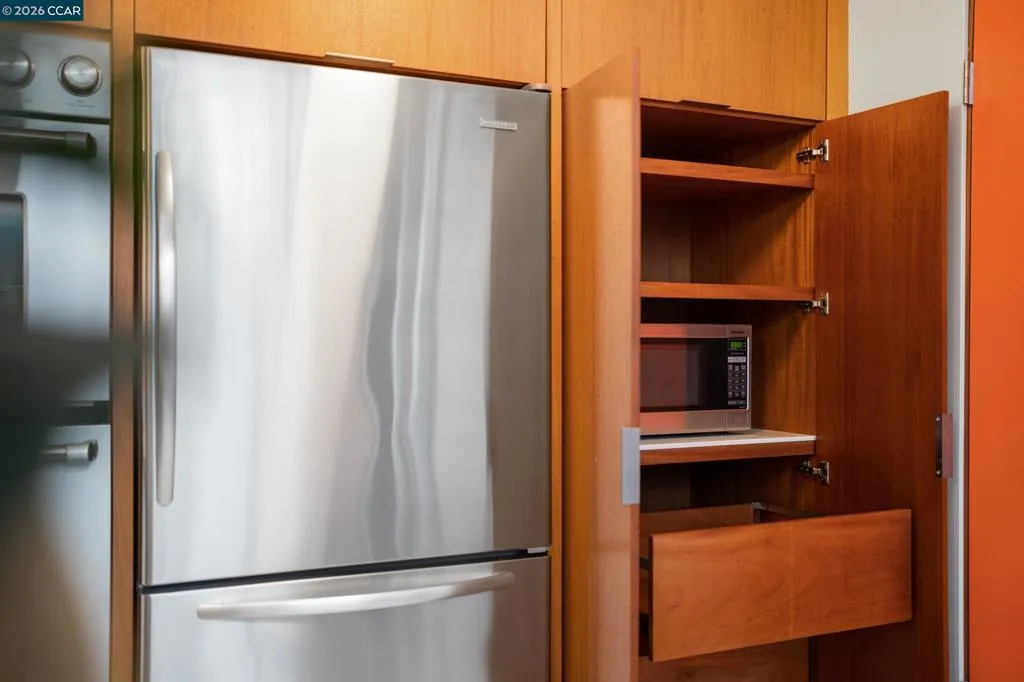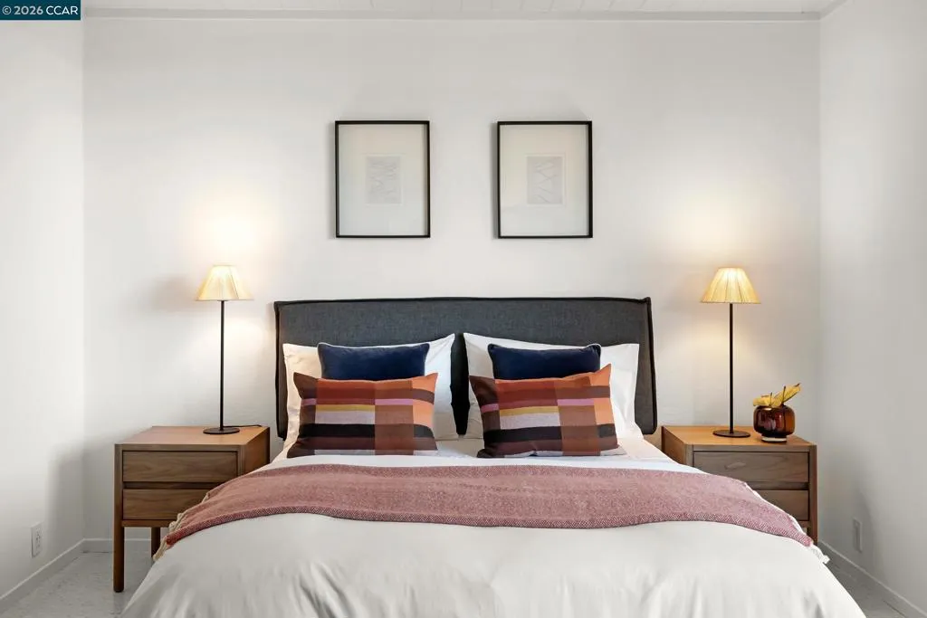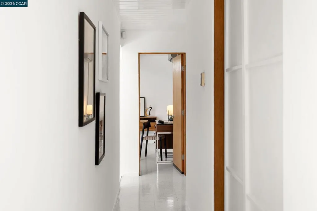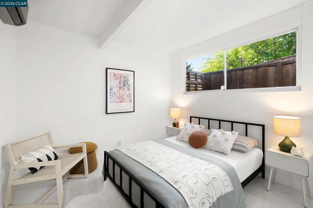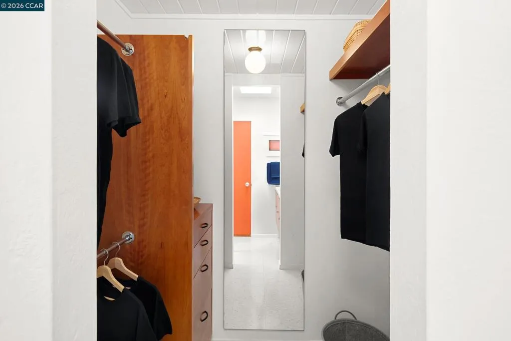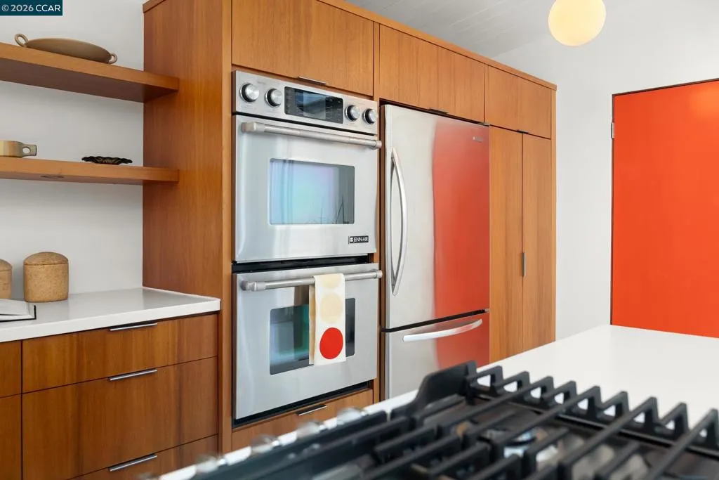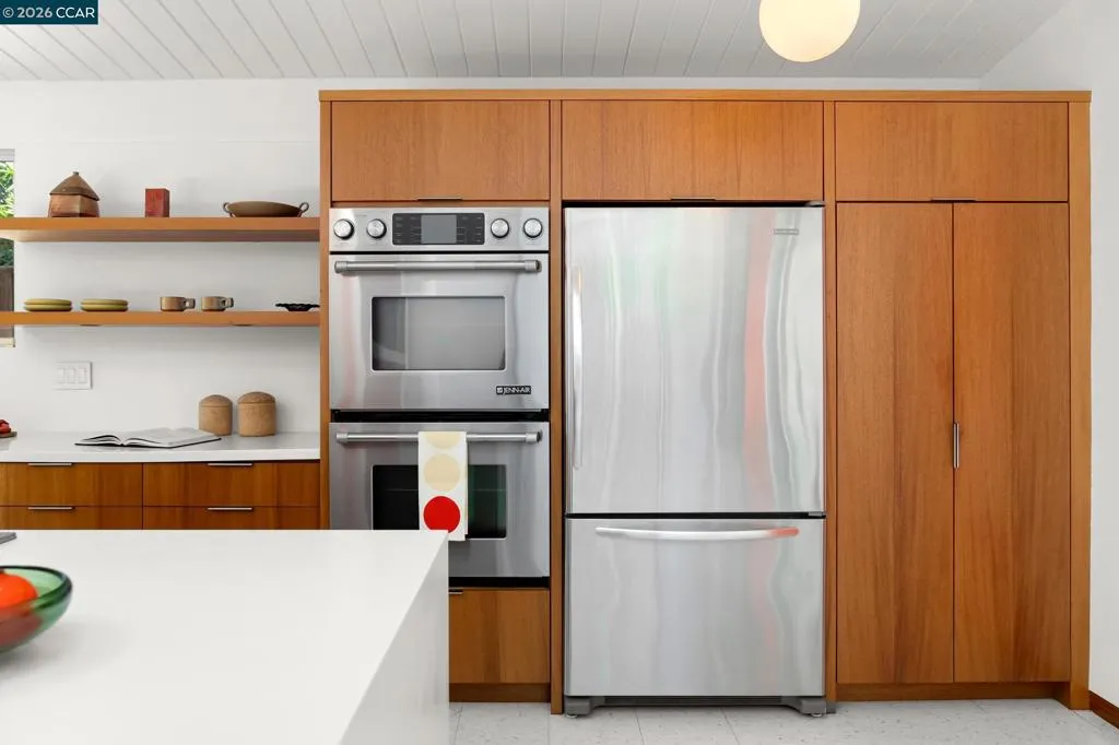 The epitome of California cool, this exceptional Eichler offers iconic mid-century modern living for the most discerning tastemakers. Built by renowned developer Joseph Eichler and designed by architects Jones & Emmons, this coveted pitched-roof, atrium, carport model, Plan OJ-1184, is an architectural offering that seamlessly blends timeless design with modern comfort. As featured in Atomic Ranch and the San Francisco Chronicle — and soon to be featured in an upcoming Eichler book, the home reflects a deep respect for its original design, enhanced by thoughtful, period-appropriate updates. Rich mahogany cabinetry by Berkeley Mills anchors the space, complemented by elegant wood paneling and classic VCT tile flooring that runs throughout, preserving its authentic mid-century character. Walls of glass flood the interiors with natural light, creating a bright and airy ambiance while fostering a seamless connection between indoor and outdoor living spaces. The signature atrium serves as a tranquil centerpiece, perfect for relaxation or entertaining. Designed for both everyday comfort and effortless hosting, the home features a chef’s kitchen with a generous island, ample pantry space, a new gas cooktop and stainless steel appliances. Additional highlights include a recently resurfaced pool, home sound system and a converted studio garage—ideal for a home office, gym, or creative retreat. Sustainability meets style with owned solar panels, allowing for energy efficiency and savings without compromising on luxury. Located in the vibrant Rancho Del Diablo community, the home enjoys picturesque surroundings with views of Mount Diablo and convenient access to BART, shopping, dining, and major freeways. Timeless design, elevated living, and unmistakable mid-century style—this is Eichler at its best.
