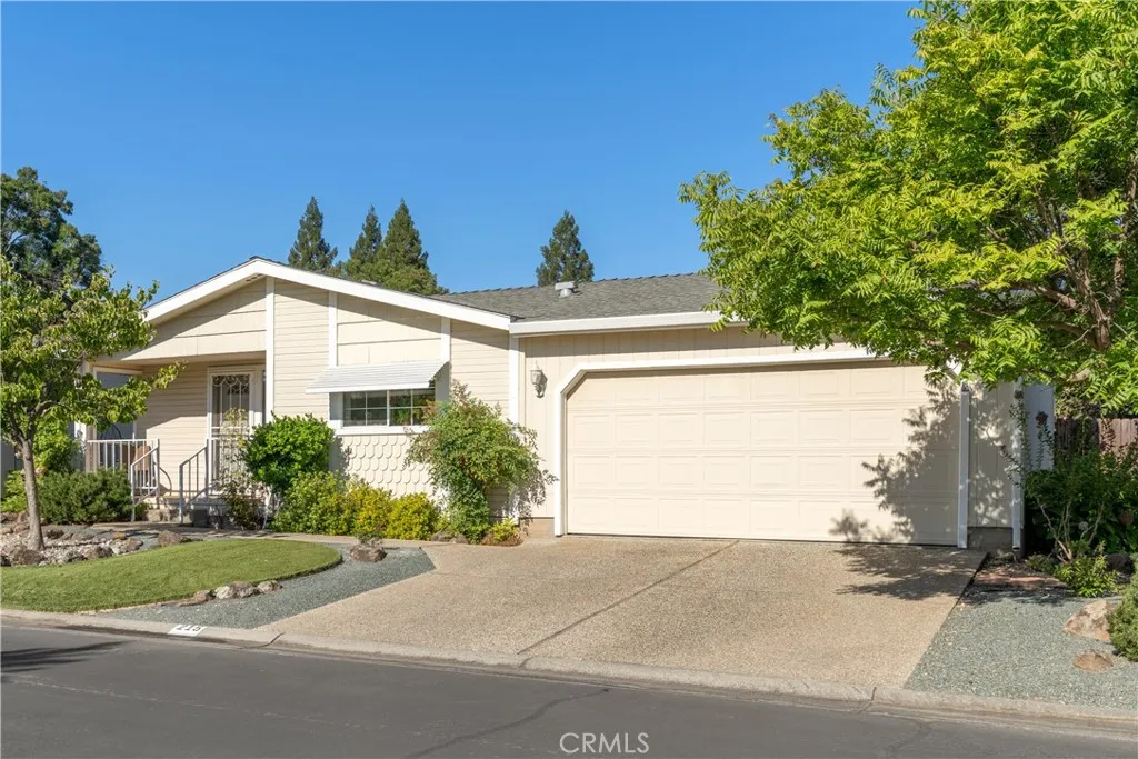 Welcome to Springfield Manor, Chico's premier 55+ gated community! This beautifully maintained manufactured home offers the perfect blend of comfort, style, and convenience. Located on a quiet street with stunning curb appeal, this home features low-maintenance artificial turf landscaping in the front and a covered patio in the back—ideal for relaxing or entertaining year-round. Step inside to a bright open-concept layout with a modernized kitchen and bathrooms, thoughtfully updated with contemporary finishes. The kitchen includes newer appliances, plenty of cabinet space, and sleek countertops, opening seamlessly to the dining and living areas. Enjoy two spacious bedrooms, both with walk-in closets, ample storage, and a 2-car garage—a rare find in community living. The sprinkler system keeps your landscaping fresh with minimal effort. Community amenities include a pool, clubhouse, and fitness center, offering the perfect lifestyle for active adults. Whether you're enjoying a workout, joining neighbors for social events, or simply unwinding at home, Springfield Manor has it all. Don't miss this opportunity to enjoy easy, low-maintenance living in a vibrant and secure community!