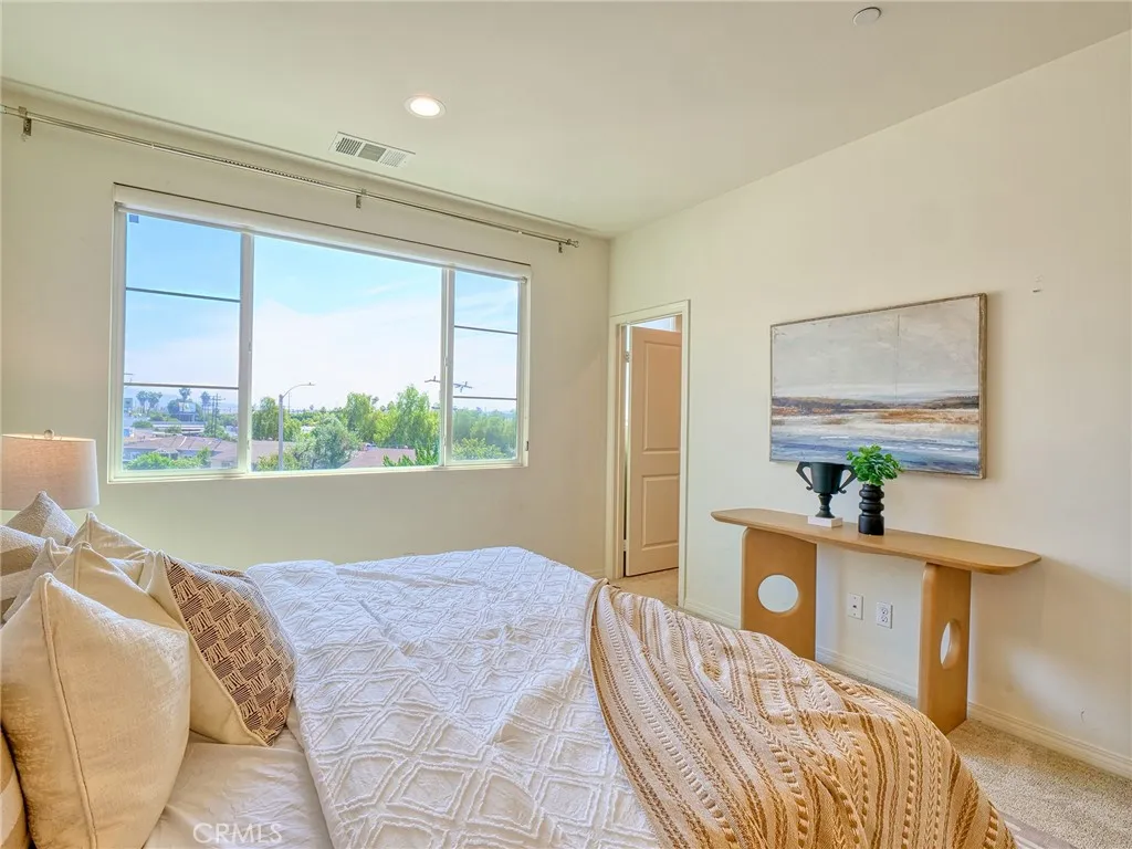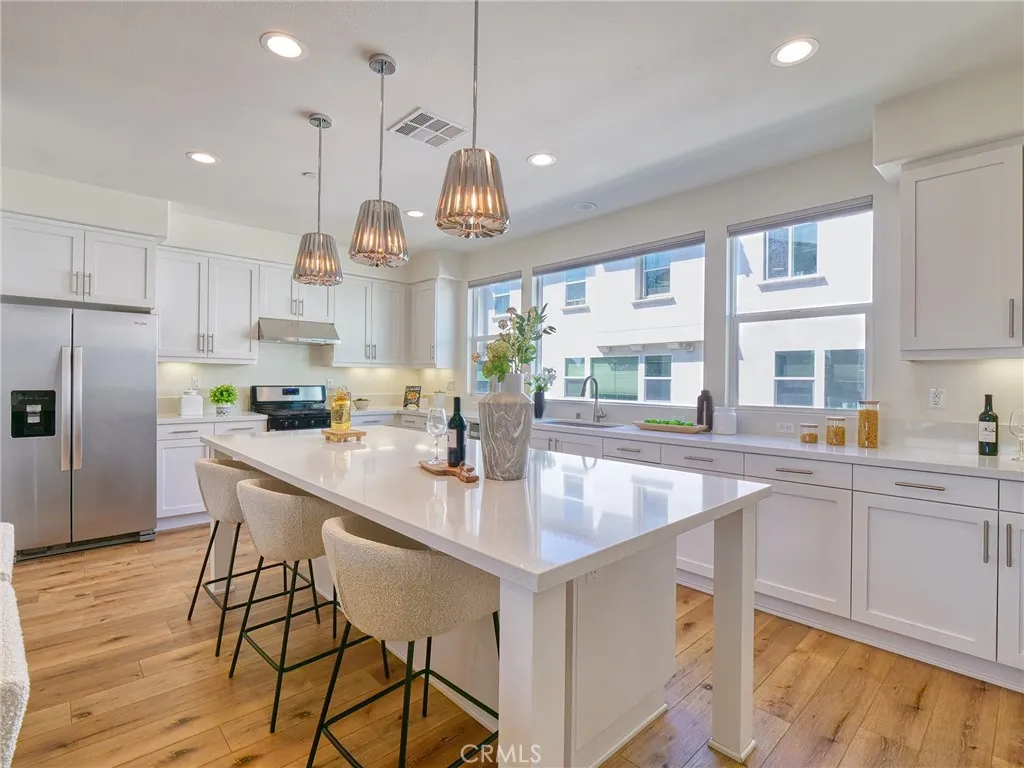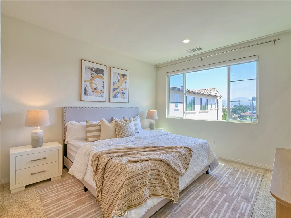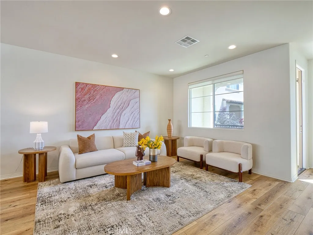 Don't miss this rare chance to own a move in ready, interior unit home in the private Arbor Walk community in Arcadia, a neighborhood of just 15 homes built in 2019 and professionally maintained. The first floor includes a full bedroom and bathroom, ideal for guests or as a primary suite. Upstairs, the second level is designed for everyday living and entertaining, with an open great room that flows into a spacious kitchen featuring a large island with luxurious countertops, pendant lighting, a newer gas range, and upgraded pendant lighting. The top floor offers three bedrooms with soft carpet. The primary suite includes dual sinks and a walk in shower, while the additional bedrooms share a full bathroom with a bathtub. This home includes numerous builder upgrades, including luxury vinyl plank flooring on the first two levels, LED lighting, Hunter Douglas and manual window shades, extra cabinetry, and a tankless water heater. A private balcony off the second floor adds a nice outdoor touch. Two car garage with direct access to the house and Tesla charger installed. Conveniently located near supermarkets, dining, schools, hospitals, and the 605, 210, and 10.