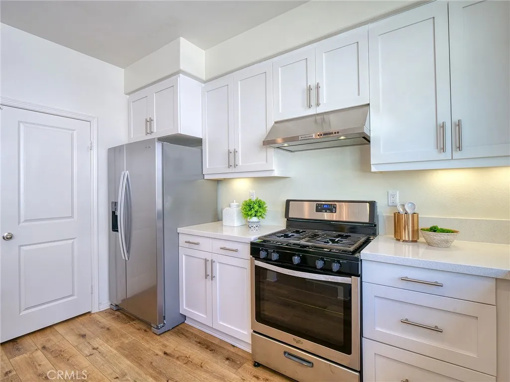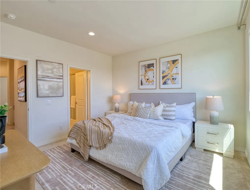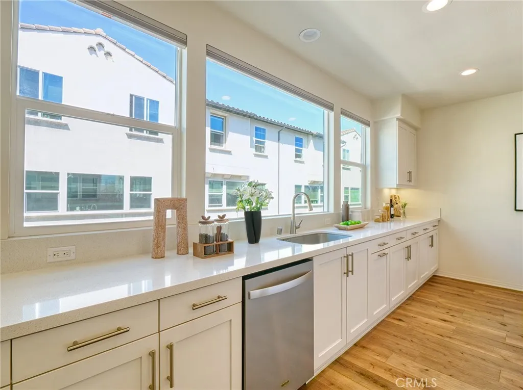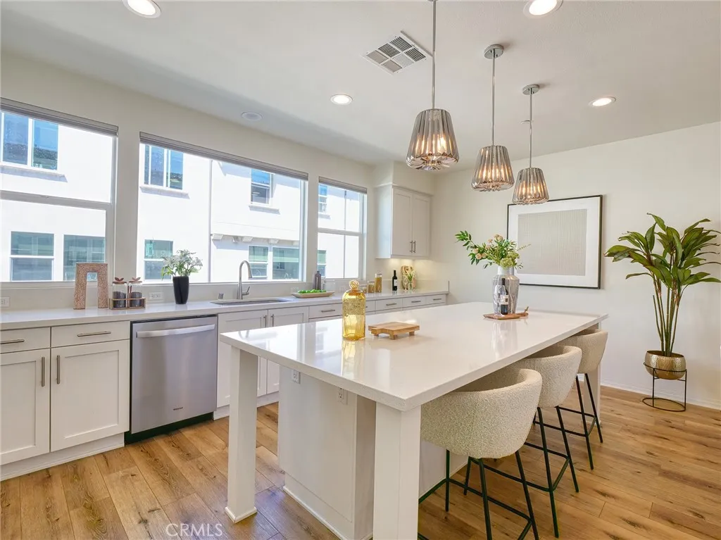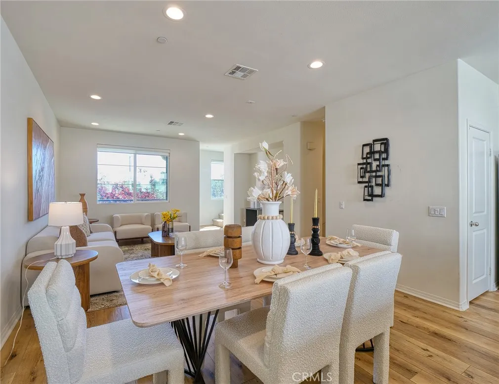 Don't miss this rare chance to own a move in ready, interior unit home in the private Arbor Walk community in Arcadia, a neighborhood of just 15 homes built in 2019 and professionally maintained. The first floor includes a full bedroom and bathroom, ideal for guests or as a primary suite. Upstairs, the second level is designed for everyday living and entertaining, with an open great room that flows into a spacious kitchen featuring a large island with luxurious countertops, pendant lighting, a newer gas range, and upgraded pendant lighting. The top floor offers three bedrooms with soft carpet. The primary suite includes dual sinks and a walk in shower, while the additional bedrooms share a full bathroom with a bathtub. This home includes numerous builder upgrades, including luxury vinyl plank flooring on the first two levels, LED lighting, Hunter Douglas and manual window shades, extra cabinetry, and a tankless water heater. A private balcony off the second floor adds a nice outdoor touch. Two car garage with direct access to the house and Tesla charger installed. Conveniently located near supermarkets, dining, schools, hospitals, and the 605, 210, and 10.