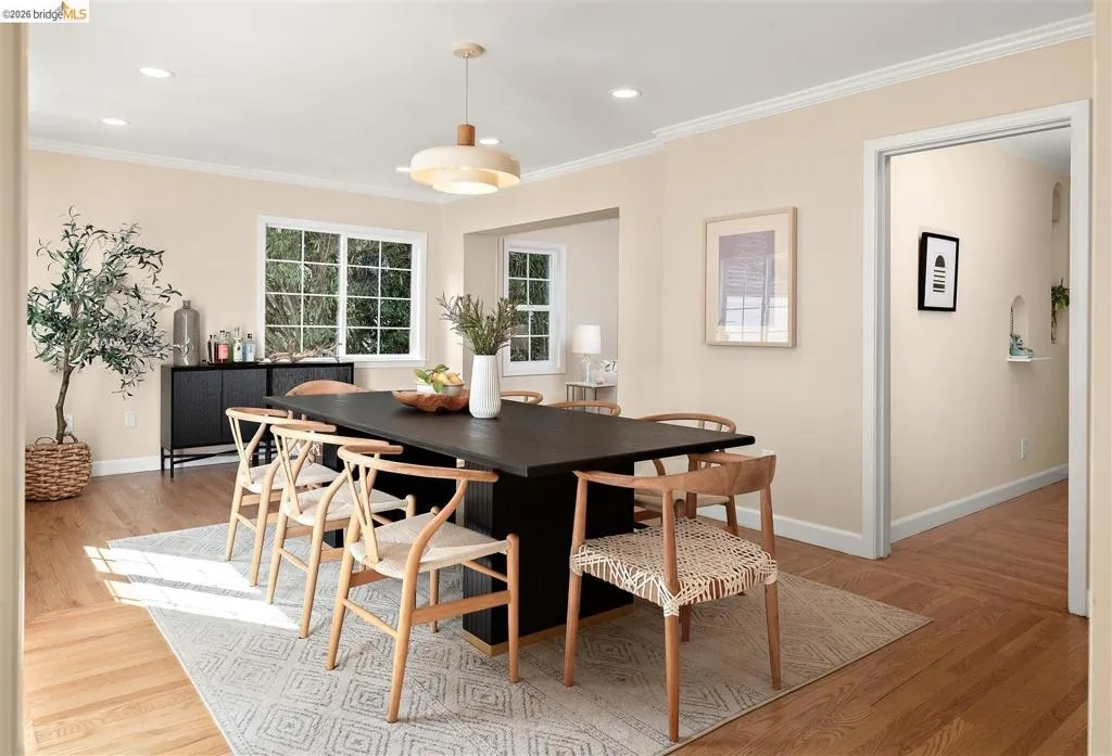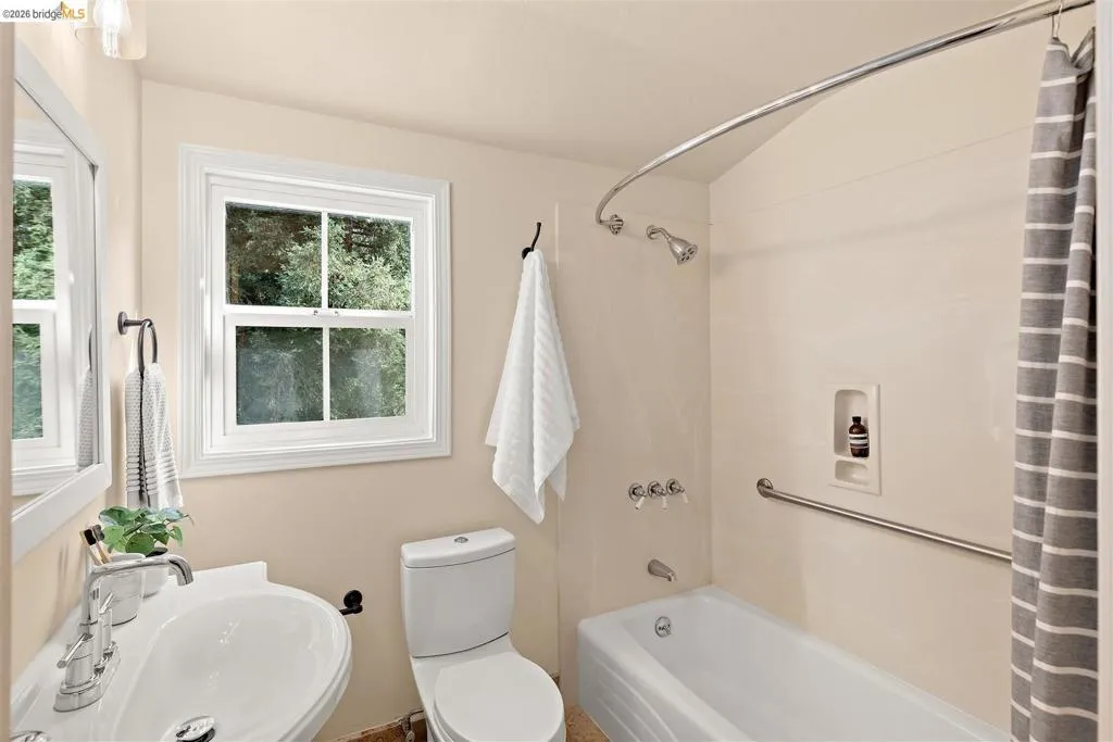 Tucked at the end of a quiet cul-du-sac in Lafayette's Hidden Valley, this newly updated 1940s Cape Cod offers genuine character, a storybook setting, and timeless building materials. A gentle creek meanders along the rear of the property, lending a sense of seclusion that feels a world away; yet is minutes from downtown, top-rated schools, freeways & public transit. Inside, the home offers four bedrooms and two full bathrooms thoughtfully arranged for flexibility. One bedroom serves as a cozy den, while another opens to a carpeted playroom, a delightful retreat for children. Period details are lovingly preserved with built-in shelving, phone niche, and rich solid oak & Douglas fir floors that speak to the home's authentic craftsmanship. At the heart of the home, a spacious eat-in kitchen and sunlit dining room with French doors to the rear yard create a natural gathering space. The adjacent living room is anchored by a Napoleon wood-burning fireplace. Outdoor living is equally compelling. A front porch with pergola sets a welcoming tone, while the rear deck, flagstone sitting area, and landscaped garden unfold gracefully toward a private creekside retreat. A detached one-car garage has been insulated and polished, offering excellent use as a studio or home office.