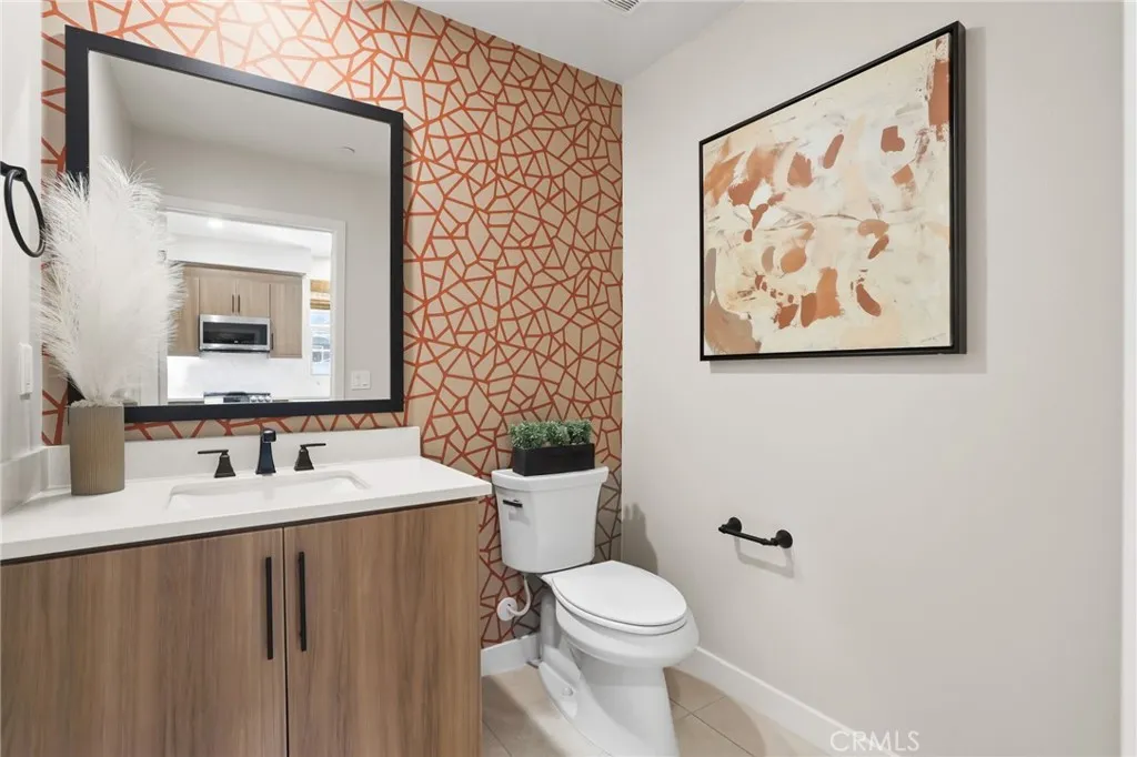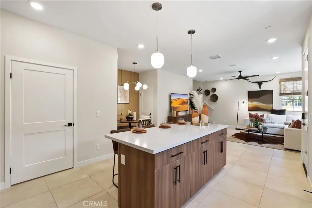 Former end unit Melia homes private model home with all the upgrades and finishes. Enter through the private entertainers ground level patio adjacent to the community pool for convenience. The gourmet kitchen is open to the family room with a built-in breakfast nook and walk-in pantry closet. shower. The entry level also includes an attached two-car garage with an universal car charger, tankless water heater. The upstairs features an open, bright entertainment loft, two guest bedrooms, laundry room, and the primary master suite. Additional upgrades include custom window coverings, LED recessed, lighting throughout, a whole-house fan, and a programmable Wi-Fi smart thermostat, front door lock. Community amenities including a pool, spa, BBQs, and picnic area. This home is conveniently located near Costco, Trader Joe's, and in a coveted school district. Photos were professionally taken with model home furniture.