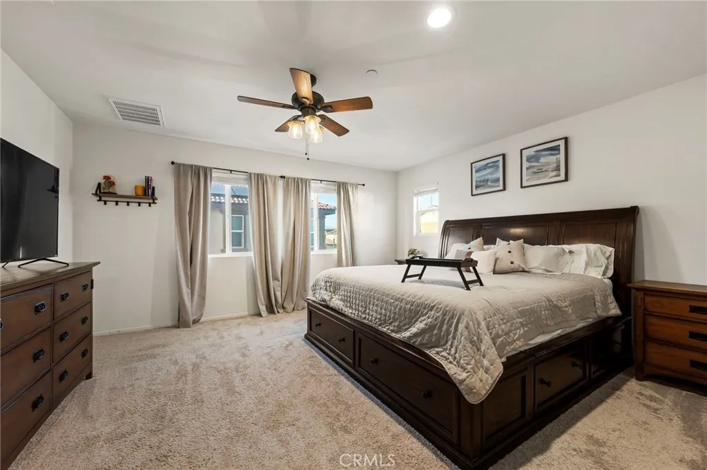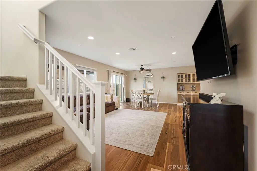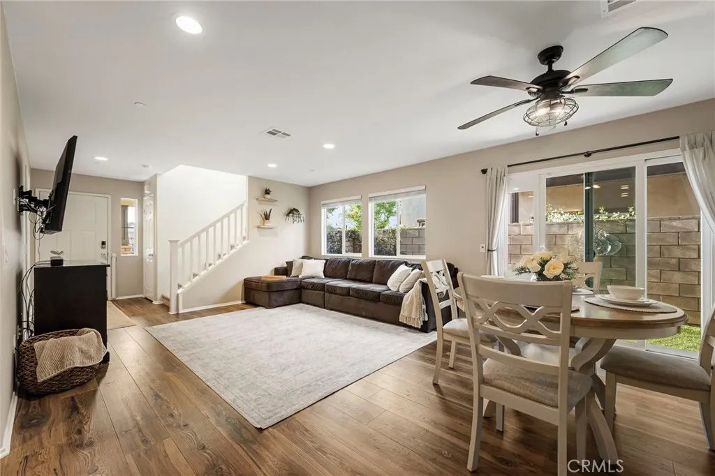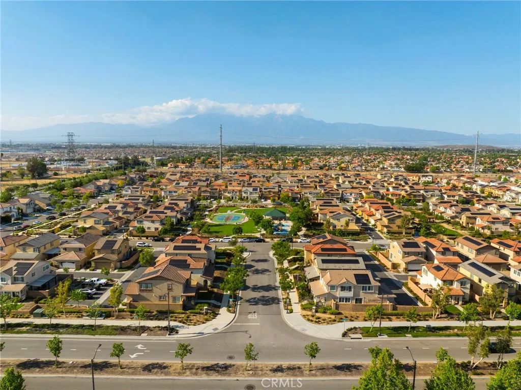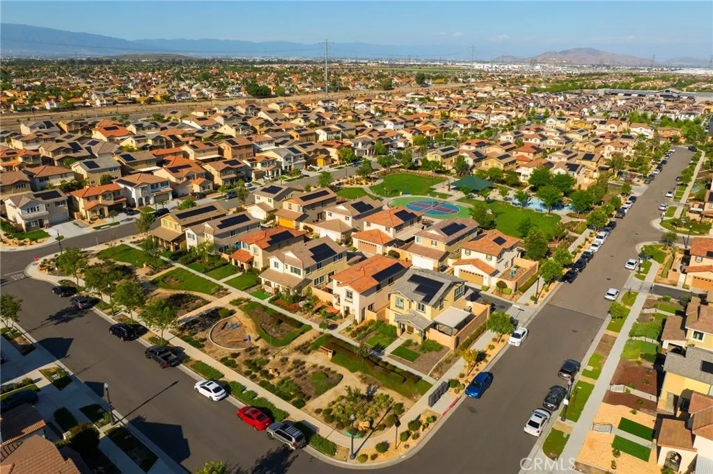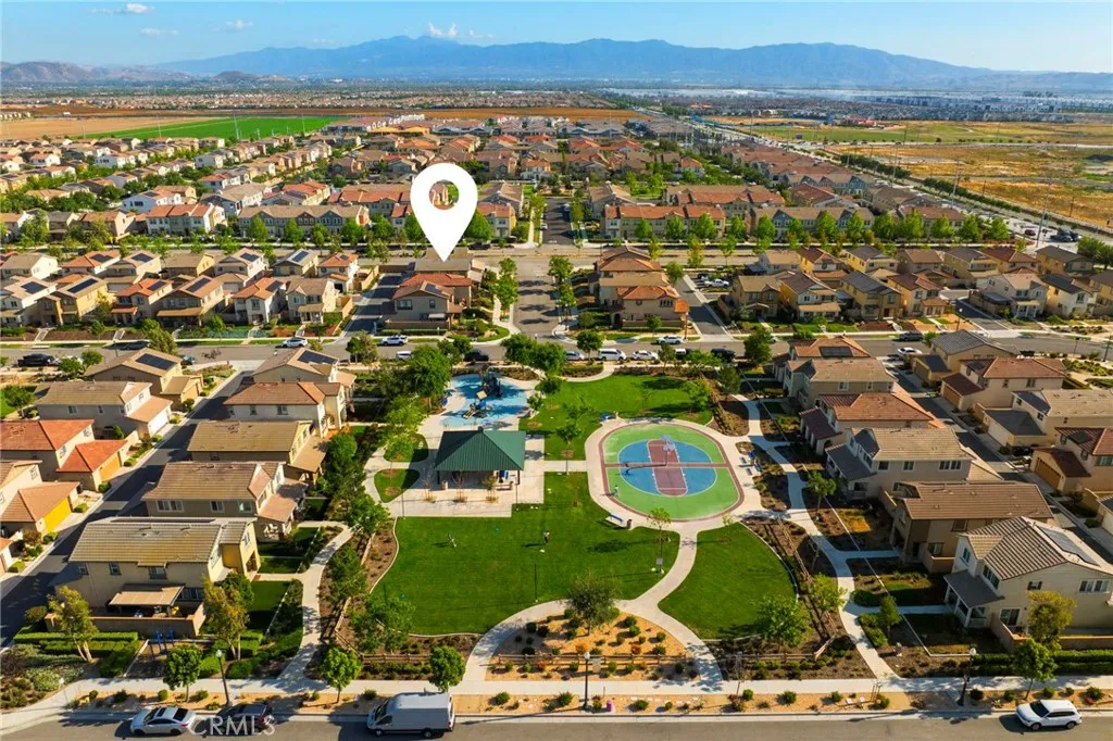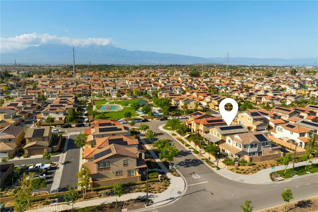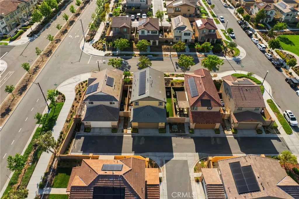 Welcome to the highly sought-after Ontario Ranch community! Nestled in the beautiful Avenida neighborhood, this stunning 4-bedroom, 3-bath home offers not just a place to live—but a lifestyle you’ll truly enjoy. From morning walks with neighbors and their dogs, to afternoons at the park with kids playing and families gathering for sports and basketball, this community is vibrant, active, and welcoming. Perched slightly above street level, the home offers an added sense of privacy and charm. Enjoy your morning coffee on the elevated front porch- your own peaceful start to the day. Step inside and immediately feel the openness of the thoughtfully designed floor plan. Just off the entry, you’ll find a main-floor bedroom and full bathroom with shower- perfect for guests, multi-generational living, or a bright work-from-home office. The main living areas feature upgraded vinyl flooring throughout the living room, kitchen, bathrooms, and entry. The L-shaped kitchen opens seamlessly to the dining area and is filled with natural light from a large window over the sink, and the dining space is enhanced with a ceiling fan for comfort. Sliding glass doors lead to a thoughtfully designed outdoor space featuring professionally installed turf throughout. While more of a patio-style yard, it offers a clean, low-maintenance area perfect for relaxing, entertaining, or enjoying time outdoors without the upkeep of a larger yard. Upstairs, you’ll find three additional bedrooms, each equipped with ceiling fans. The spacious primary suite offers a light and airy feel, with plenty of room to unwind. The primary bathroom features a large walk-in shower with an upgraded shower head and filtration system for a spa-like experience. Convenience continues with an upstairs laundry area, complete with included stackable washer and dryer. Additional highlights include paid-off solar (a major savings benefit) and a low HOA. Location is everything- and this home delivers. Just steps from the Avenida community park and minutes from grocery stores, Costco, shopping, dining, Ontario International Airport, the brand new state of the art ONT Field, and major freeways. Plus, exciting new developments are underway, including a brand-new school coming soon. This is more than a home- it’s a lifestyle. Don’t miss your opportunity to see it in person.