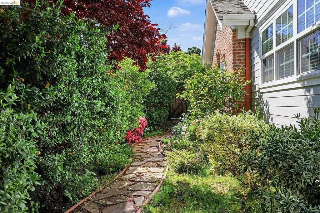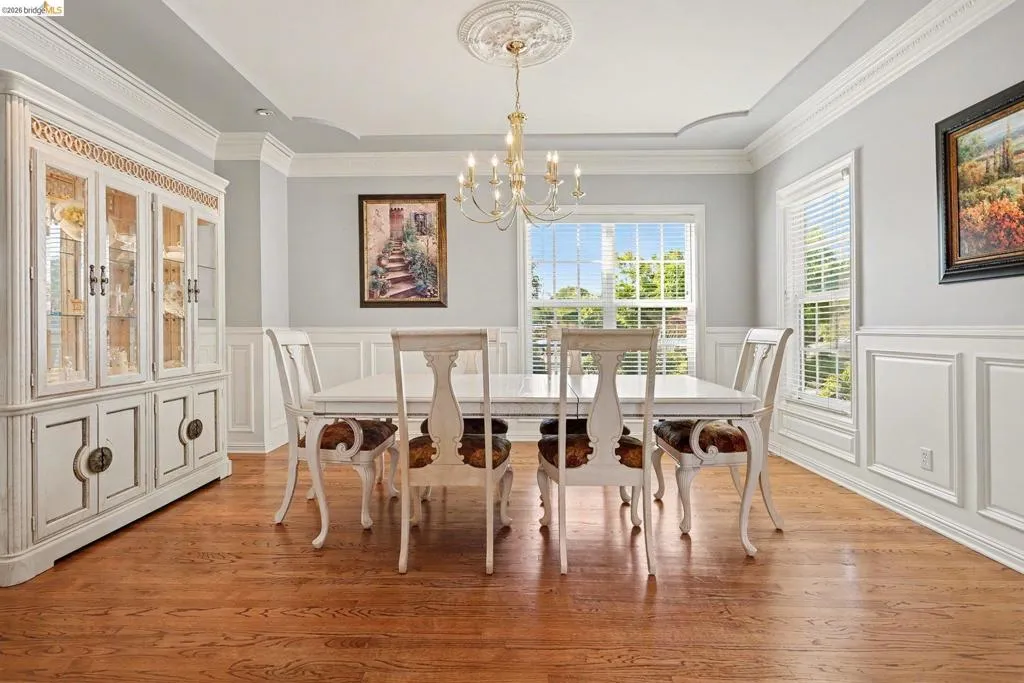 Exquisite single-level custom home on a corner lot with stunning curb appeal, 3-car garage with roundabout driveway, and full RV/boat side yard access with hookups. The property features high coffered grid recessed ceilings with beams in the living room, and a dining room with tray ceilings and wainscoting. Decorative cased openings, crown molding, and pilasters flow throughout the main living spaces. Gourmet kitchen boasts high-pitched ceilings with wood beams, stainless steel appliances, a 6-burner gas stove top, double oven, abundant cabinetry, and arched windows. The primary suite offers tray ceilings, crown molding, jetted tub, walk-in shower with seating, dual vanities, and a spacious walk-in closet. Forced air heating & cooling with 2 zones ensures comfort throughout. Enjoy a private backyard oasis with a covered patio, quaint waterfall, and koi pond, all on over 1/3 acre. Full attic storage completes this rare offering. Perfect for family living and entertaining.