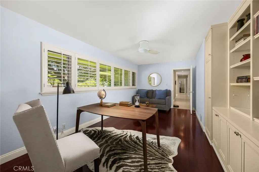 This beautiful Traditional-style home is situated on a quiet, tree-lined street in San Marino's "Library District." With close proximity to Valentine and Huntington schools, the Crowell San Marino Library, and Lacy Park, this house offers a picturesque Southern California lifestyle, replete with a grassy, landscaped front yard shaded by one of San Marino's iconic oak trees.The home sits graciously on 13,262 sq. ft. of professionally landscaped grounds and offers over 2,946 sq. ft. of exceptional living space. There are 4 bedrooms and 3 bathrooms, along with a dedicated office featuring built-in shelves and cabinets that make working from home a breeze. The formal living room features a fireplace and is flushed with natural light pouring in from large, forward-facing windows. The formal dining room overlooks the beautiful front yard and features a chandelier.The gorgeous kitchen offers granite counters, a center island with casual bar seating, and an eat-in breakfast area. In addition, there is a light-filled family room with an entertainment center and glass doors opening to the patio and rear garden. The primary suite is a luxurious retreat featuring expansive his-and-hers closets and a spa-like ensuite. A large laundry room with a sink and ample storage makes everyday tasks effortless. The beautifully landscaped backyard with a sparkling pool offers a perfect flow of indoor/outdoor living via vast, retracting walls of glass. Completing the property is an oversized two-car detached garage with storage and an automatic gate. Features include central air/heat, plantation shutters, and a security alarm system with video surveillance.