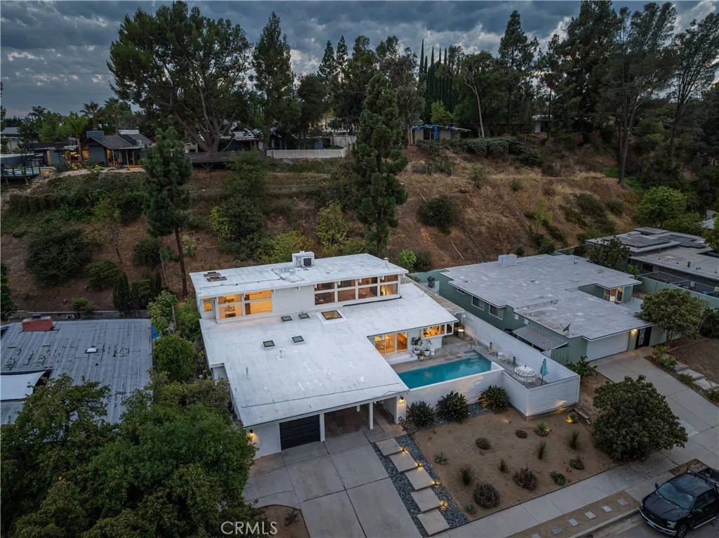 ASSUMABLE LOAN @ 2.750% RATE! Stunning Mid-Century Modern home echoing the iconic Eichler architecture in the highly desirable Balboa Highlands community. One of the largest and most striking models, this modern architectural gem features an open floor plan that seamlessly connects indoor and outdoor living—perfect for entertaining and everyday relaxation. The home offers 5 spacious bedrooms, including two primary suites (one on each level), each with spa-like baths and large walk-in closets. The gourmet chef’s kitchen opens to a casual dining area and spacious living space. Upstairs, a large family room or home theater showcases beautiful mountain views. Enjoy this private oasis complete with a sparkling pool and multiple areas for lounging and dining as well as drought-resistant desert landscaping. Conveniently located near top-rated schools, easy freeway access, and O’Melveny Park with its scenic hiking trails. A rare opportunity to own a true mid-century modern masterpiece in one of the Valley’s most sought-after neighborhoods.