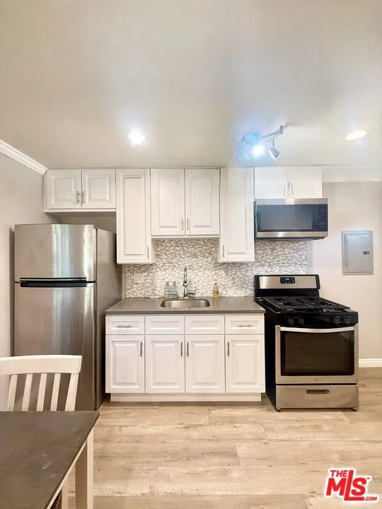 Step into your own private retreat this detached studio offers the perfect blend of comfort, style, and convenience. Tucked behind a secure gated entrance and surrounded by lush landscaping, the home welcomes you with a private walkway and your own fenced yard ideal for relaxing or enjoying time with a pet. Inside, the bright, thoughtfully designed space comes fully furnished and move-in ready. Enjoy a modern kitchen with stainless steel appliances and granite countertops, a cozy yet functional living area, and the convenience of in-unit stackable laundry. Every detail has been curated, from the new queen bed and dining setup for four to the sectional sofa with a pull-out bed and included outdoor furniture. Located just moments from Trader Joe's, popular shops, and great dining and only one mile north of Ventura Blvd you'll have quick access to the Westside and nearby studios while still enjoying a peaceful residential setting. Additional perks include ample street parking, water covered by the owner, and a private front gate for added security (main house located at the front of the lot). Don't miss this rare opportunity, click to view the video tour!