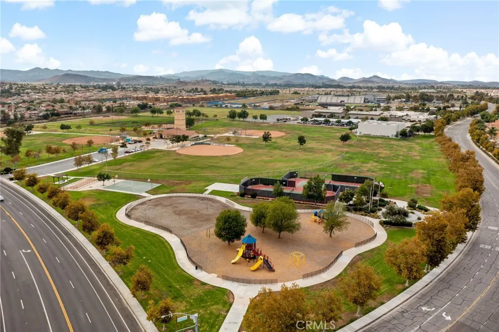 Set within the highly desirable Menifee Lakes community, 30138 Via Palermo presents an exceptional opportunity to own a spacious and beautifully appointed pool home that blends comfort, functionality, and inviting indoor-outdoor living. Offering 4 bedrooms and 3 bathrooms, this residence welcomes you with soaring ceilings and an abundance of natural light that fills the open-concept layout, creating a bright and airy atmosphere throughout. The thoughtfully designed kitchen features stainless steel appliances, Corian countertops, a breakfast bar, and a cozy breakfast nook that overlooks the sparkling backyard pool—perfect for casual dining or morning coffee. The kitchen flows effortlessly into the family room with a warm fireplace, while the adjoining living and dining spaces provide ideal areas for both entertaining and everyday living. A versatile downstairs bonus room—ideal for a home office, guest space, or potential fifth bedroom—along with a ¾ bath adds flexibility not reflected in the recorded square footage. Upstairs, the expansive primary suite offers a peaceful retreat, complete with a private balcony showcasing mountain views and stunning sunset. The ensuite bath has been tastefully updated with dual vanities and an oversized glass-enclosed shower, creating a spa-like experience. Additional bedrooms are generously sized, offering comfort and adaptability for family or guests. Step outside to your own private backyard oasis featuring a covered patio, low-maintenance landscaping, and a refreshing in-ground pool and spa—perfect for entertaining, relaxing, or enjoying warm summer days. The solar system adds energy efficiency and helps manage utility costs. Located within the lovely Menifee Lakes, residents enjoy access to scenic walking paths around the lake, a huge community pool and spa complex w beach entry, nearby parks, shopping, dining, and highly regarded schools. This home offers the ideal combination of lifestyle, location, and livability—an outstanding value in one of Menifee’s most sought-after neighborhoods.