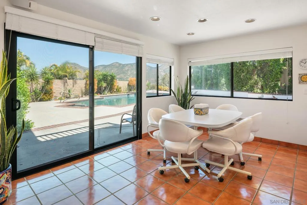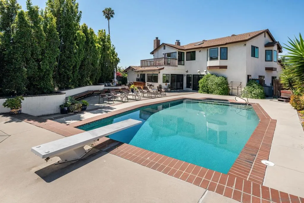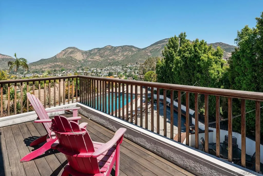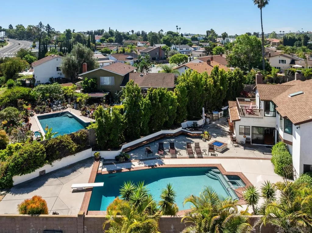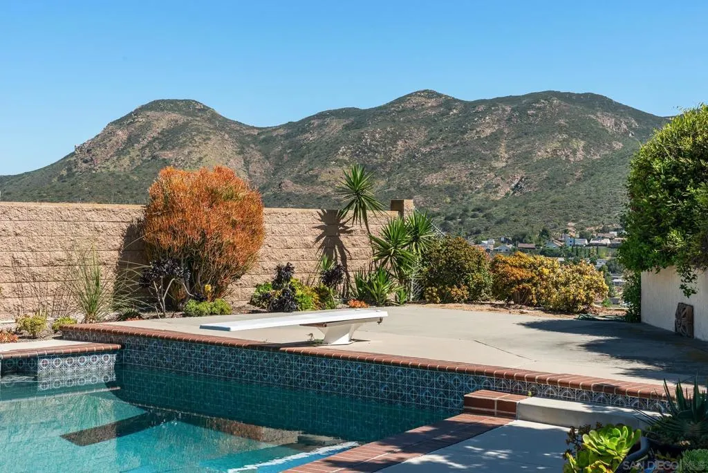 Truly unique Vista Del Cerro opportunity with stunning views of Cowles Mountain. This expansive floor plan features an open kitchen design, abundant natural light, and seamless flow for both everyday living and entertaining. The spacious primary suite offers a walk-in closet and a large primary bath, creating a comfortable private retreat. Two additional upstairs bedrooms are generously sized and filled with natural light. The main level includes an additional bedroom with an ensuite bath, along with three more bedrooms—ideal for multi-generational living or flexible space needs. A large three-car garage provides ample storage and convenience, while owned solar panels provide energy efficiency and long-term savings. Step outside to your backyard oasis, complete with a BBQ area, expansive pool and spa, and plenty of space to entertain or relax while taking in the views. Ideally located within walking distance to highly rated Dailard Elementary and scenic Dailard Park. This home is also within the boundaries for Pershing Middle School and Patrick Henry High School. A great value and a true must-see!