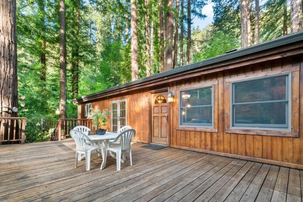 Welcome to 15101 Two Bar Rd a storybook 2-bedroom, 1-bath home on a 0.61-acre lot in Boulder Creek. This 1,412 sqft retreat blends classic Santa Cruz Mountains character with thoughtful modern upgrades. An oversized deck greets you as you arrive, ideal for morning coffee under the redwoods or evening entertaining. Inside, enjoy a cozy wood-burning fireplace insert for cool mountain nights. The kitchen features a gas stove with all appliances included, and the updated bathroom offers soft-close cabinetry and a heated towel warmer. A dedicated office with attic access provides flexible work-from-home or storage options. Recent improvements include a new gas furnace, gutters, and an upgraded electrical panel with a 220V circuit ready for a hot tub. The roof and septic system have both been recently inspected and are in good condition. The lot offers room for RV parking and entertainment. Terraced gardens feature a curated mix of trees, flowering plants, and blueberry bushes on drip irrigation, plus a garden shed, outdoor structures, and storage below the home. New carpet in both bedrooms adds comfort, and the main bedroom opens to a private deck where you can step directly into nature. Tucked into the redwoods with serious charm, practical upgrades, and rare acreage, a must see!