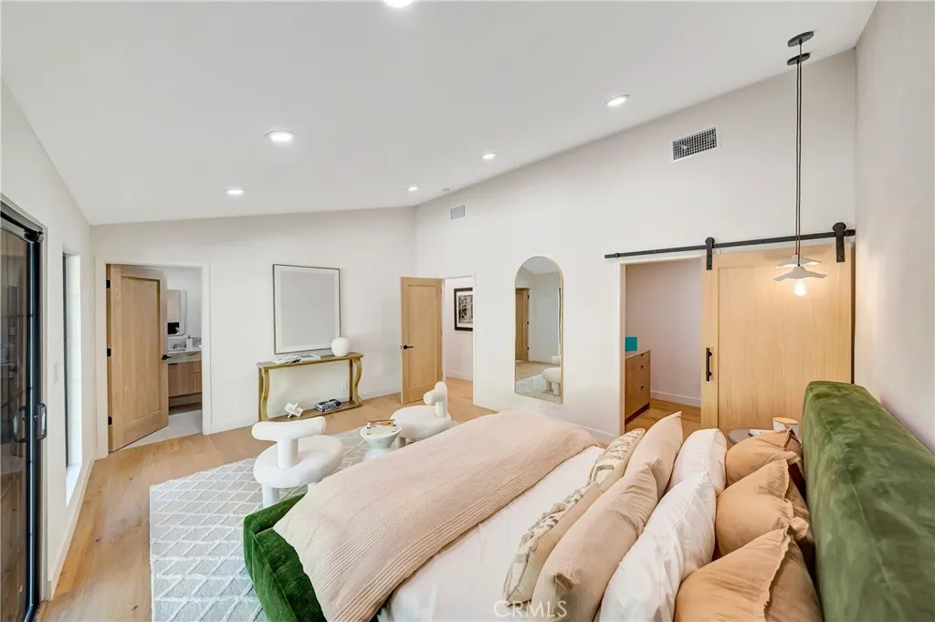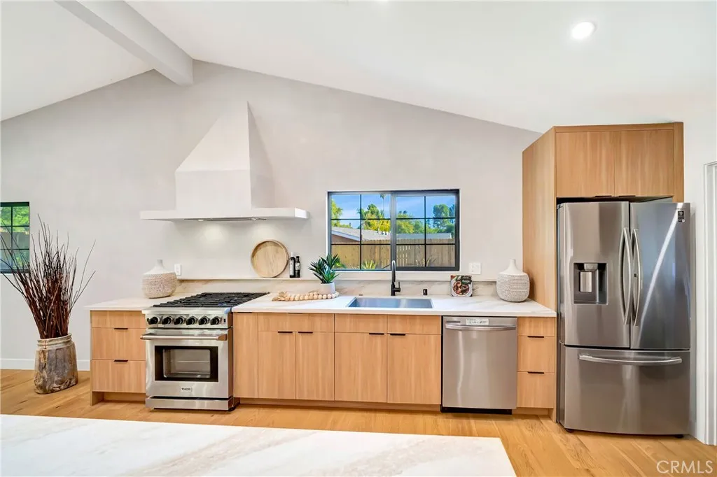 Set on a 14,165 sq. ft. flat and private lot in prime Woodland Hills, this stunning modern farmhouse offers the ultimate blend of luxury, space, and seclusion This fully remodeled and expanded modern farmhouse, with the required permits and OK for CofO, sits on a spacious, private flat lot and has been reimagined from top to bottom with luxury finishes and modern upgrades. Virtually everything is new, including pool, backyard, patio, electrical, plumbing, roofing, HVAC, and more—making this home completely turnkey. The open-concept floor plan boasts vaulted ceilings, wide-plank water proof wood floors, skylights, and expansive black-framed windows that flood the home with natural light. The chef’s kitchen features custom cabinetry, a stone waterfall island, high-end appliances, and a walk-in pantry—opening to a spacious dining area and great room, ideal for entertaining. Retreat to the luxurious primary suite with vaulted ceilings, direct yard access, and a spa-like bath with dual vanities and a large walk-in shower. Three additional bedrooms, including a private mini suite, provide flexibility for family, guests, or office use. Step outside to a brand-new resort-style pool and spa, surrounded by a fully private backyard with smooth stucco Venetian-plaster walls. The redesigned outdoor space includes a turf play area and a covered patio/pergola lounge with string lighting and a built-in fire pit—perfect for year-round entertaining. Additional highlights include two brand-new HVAC systems, smart-home upgrades, a dedicated laundry room, RV parking with full hookups being installed, and a finished two-car garage equipped with electric vehicle power. Ideally located near top schools, shopping, and dining, this property combines privacy, luxury, and convenience—offering top-notch modern living in the Valley at its finest.