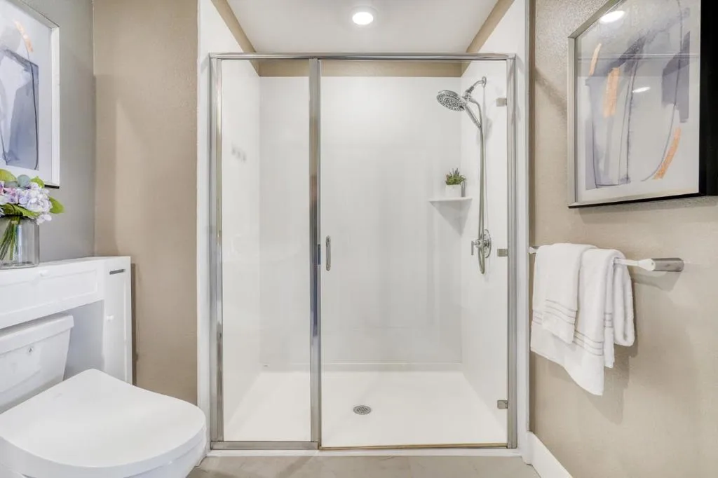 Welcome to this bright and modern 2-bedroom, 2-bath residence located in the highly desirable Innovation community of Fremont. The spacious living and dining area flows seamlessly into a chefs kitchen featuring quartz countertops, a large island, ceiling-height cabinetry, and stainless steel appliances with gas cooktop. Bedrooms are thoughtfully positioned on opposite sides of the home, providing ideal privacy for guests, roommates, or a home office setup. The primary suite offers a generous walk-in closet and a well-appointed in-suite bathroom. Additional highlights include in-unit washer and dryer, central air conditioning, and modern flooring throughout. This secure building includes elevator access and a two-car tandem garage with extra storage. HOA covers water and gas, adding everyday convenience. Residents enjoy resort-style amenities including a clubhouse, fitness center, swimming pool, and BBQ area. Ideally located within walking distance to top-rated Lila Bringhurst Elementary, parks, shopping, dining, and BART, with easy access to major freeways and leading tech employers. This move-in ready home offers the perfect blend of comfort, convenience, and modern urban living.