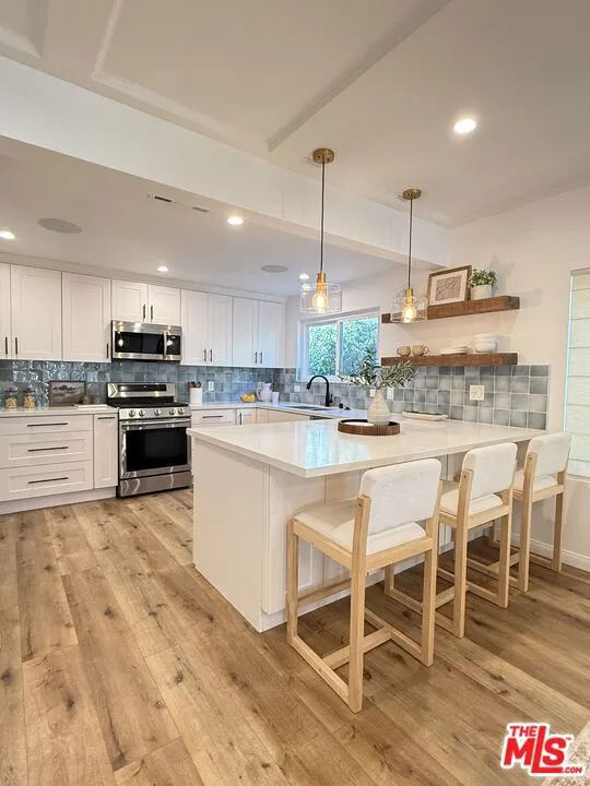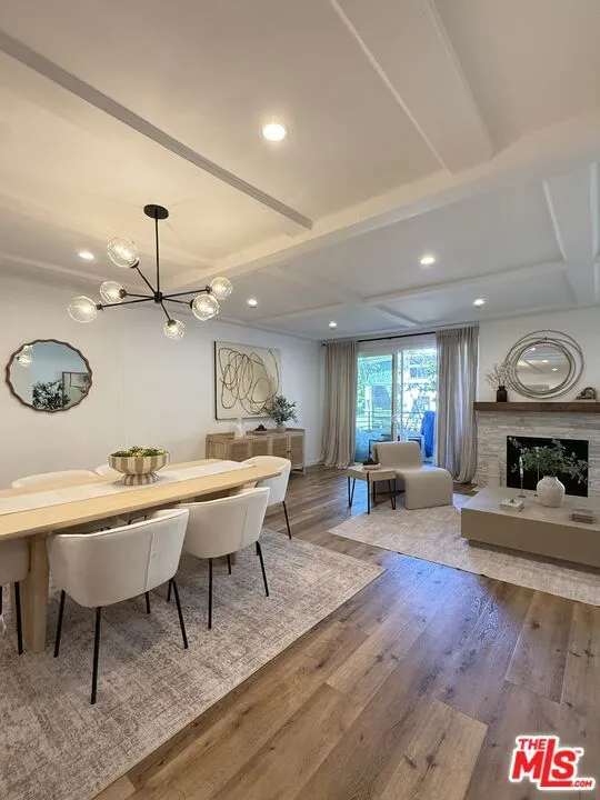 Stunning, townhouse-style condo that has been newly painted and remodeled with new appliances including washer dryer and new floors! This ground floor, front facing, corner unit has 3 bedrooms and 2.5 bathrooms. Enter the unit greeted with natural light, private balcony and a fully redone kitchen with wine fridge. The first level is perfect for entertaining with a half bath and large living room with recessed lighting, in-ceiling speakers, fireplace and coffered ceilings. The unit's three bedrooms are all located upstairs making them peaceful retreats. The primary has two closets one a spacious walk in and a beautiful ensuite bathroom. It also boasts a fireplace and additional private balcony. Upstairs laundry creates ease with the additional two bedrooms and a hall bath complete with tub. There is secured 2-car tandem parking with a private storage unit. The building has a pool, has recently undergone a fully redone exterior including landscaping, and has a recreation/meeting room. HOA dues include earthquake insurance, water and waste. Close proximity to Westwood Charter Elementary School. Enjoy the comfort and convenience of a bright, airy space in a prime West LA location close to Westfield Century City Mall, UCLA, and Westwood Village.