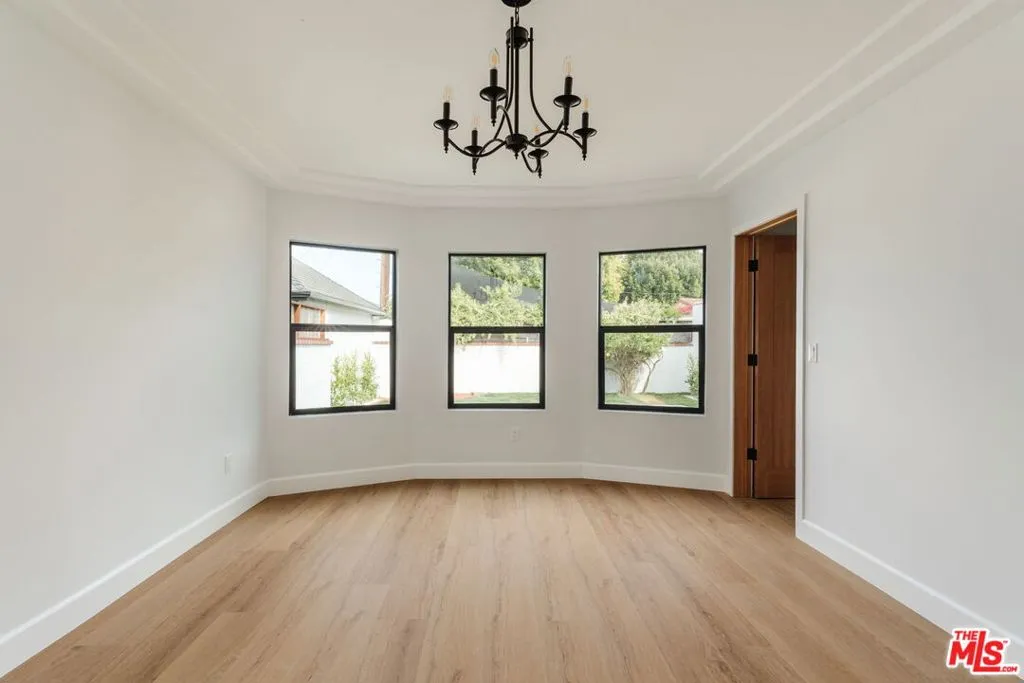 Located in the highly desirable Leimert Park neighborhood, this beautifully reimagined turnkey Spanish-style home blends timeless character with modern design. Featuring 3 bedrooms and 2 bathrooms, the residence has been completely remodeled with an eye for detail and elevated finishes throughout. Flooded with natural light, the interior showcases a warm, cohesive design enhanced by a large skylight in the hallway, luxury flooring, designer light fixtures, and a seamless flow between the living, dining, and kitchen areas. All three bedrooms are thoughtfully clustered on the left side of the home, creating a functional and private layout, including a beautiful primary suite complete with an attached bath and a walk-in closet. The kitchen is a true standout, boasting Taj Mahal countertops, a custom backsplash, a wine fridge, and Forno appliances, perfectly balancing style and functionality for everyday living and entertaining. Major system upgrades provide peace of mind, including a new HVAC system with Nest thermostat, an upgraded 200 amp electrical panel, fully updated plumbing and electrical, new windows, custom mahogany doors, and a brand-new sprinkler system. The exterior has been refreshed with new smooth stucco, custom gates, and thoughtfully designed landscaping that enhances both curb appeal and outdoor enjoyment. At the rear, a detached finished two car garage offers flexible space for a home office, gym, or creative studio. Double French doors open to the backyard, where a grassy lawn and built-in outdoor fireplace create an ideal setting for relaxing or entertaining.