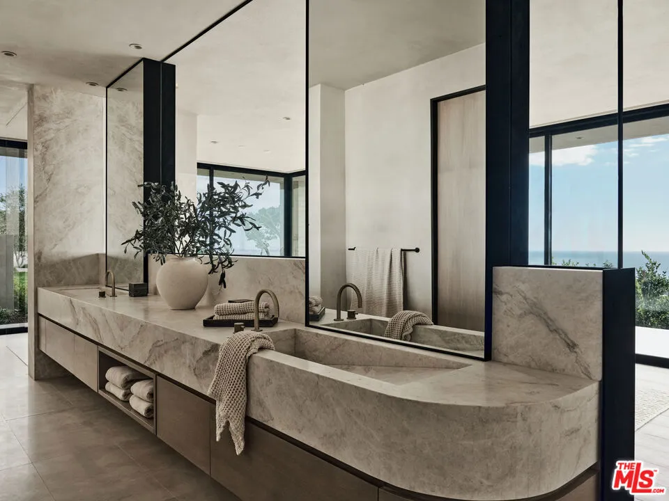 Lease option to buy and other flexible acquisition structures may be considered. Introducing this newly constructed organic modern residence, situated on 1.25 acres and offering well over 10,000 square feet of interior and exterior entertainment space, with 5 bedrooms and 7 bathrooms. Expansive volumes, walls of glass, and a large ocean-view deck define the main living areas, complemented by refined natural materials throughout. The chef's kitchen is equipped with Miele appliances and Taj Mahal quartzite. The primary suite features a private terrace and a spa-like bath. The lower level includes additional bedroom suites and a wellness lounge with a gym, sauna, massage room, and steam room. Outdoor amenities include an infinity pool and spa, outdoor kitchen, fire features, a motor court, and a 3-car garage. The home is fully equipped with a Control4 smart home system.