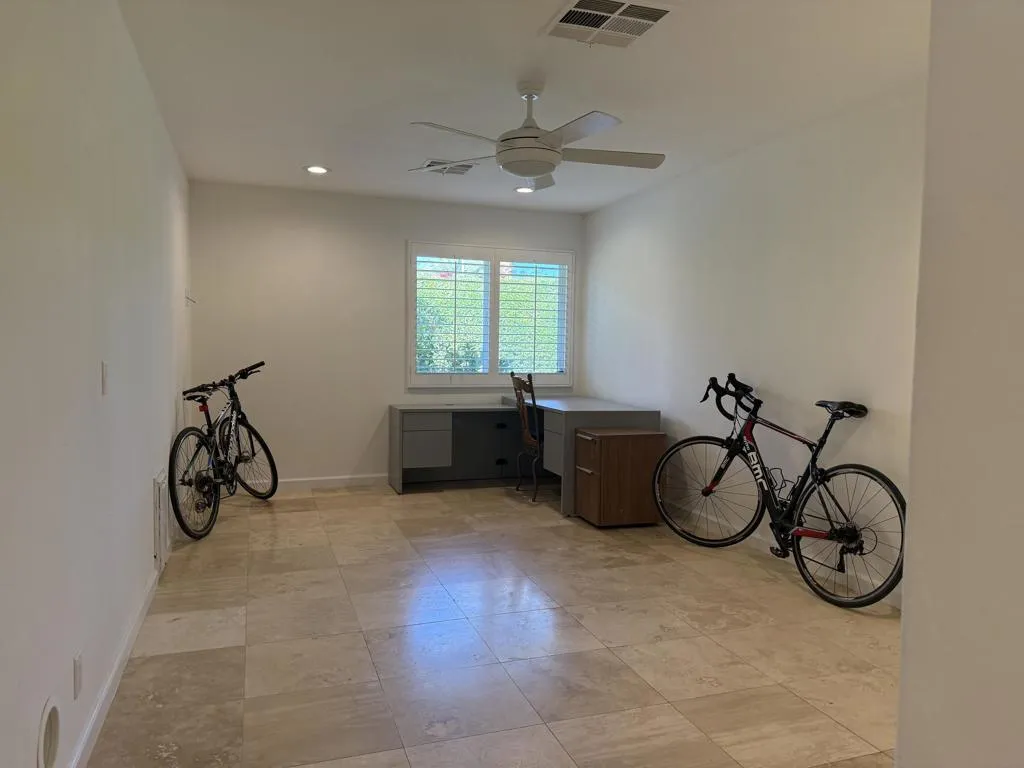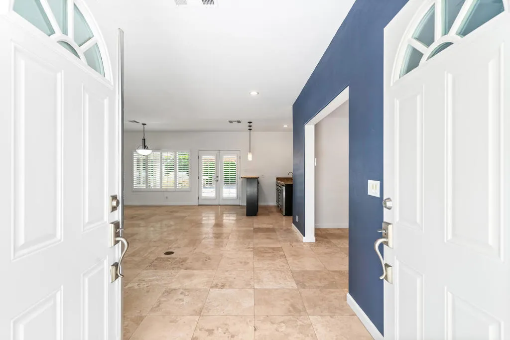 EXCEPTIONAL VALUE! Over 3000 sf of living on nearly 1/2 acre offering the seclusion and room you've been searching for. This Mediterranean walled and gated Mini-Estate is surrounded by complete privacy hedges and beautiful yards. It is conveniently located with generous off-street parking for cars, guests and toys. Separate private saltwater pool and spa yard with an inviting Pavilion for Al Fresco relaxation and dining, BBQ and fire feature. And a third expansive yard that features mountain views, mature shade trees, fruit trees and swaying palms. Wonderful home with Living room, dining area and wet bar with fireplace and views to the mountain view yard in front and the pool yard in back. A totally outfitted kitchen with abundant cabinets and a double sized island opens to a family room with a fireplace. The poolside primary suite is very spacious with a fireplace, lovely bathroom with separate walk-in shower and soaking tub and a very large walk-in closet. Two more bedrooms with French Doors opening to the grassy yard and hall bath with dual sinks. The bonus room could be a 4th bedroom and there is also a den, formal dining room or office with bookshelves built. 3 car attached garage with storage plus two detached storage buildings. Travertine floors throughout, separate laundry room and powder bath. Owned solar system covers 90+% of electricity cost if year-round owner. NO HOA. Perfect home for pets, outdoor fun and privacy. Priced well under replacement cost making this the best buy on the market today!