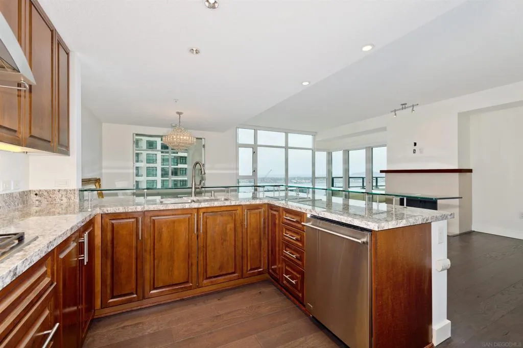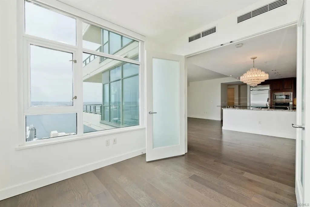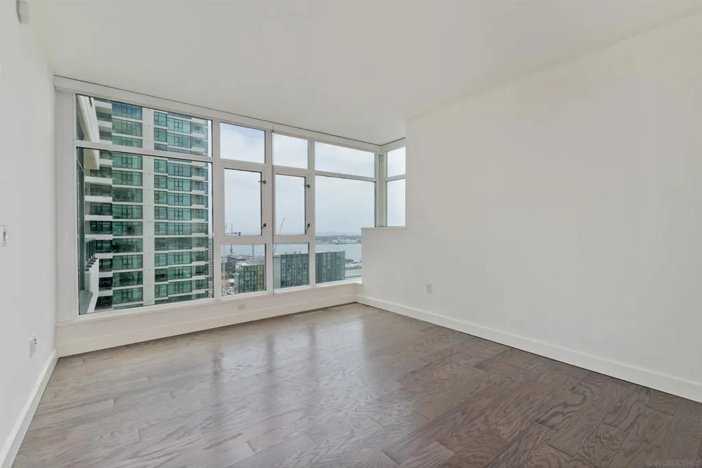 This is a 2BR+Den/2BA on the 28th floor of The Grande North. You have bay/ocean views from every room towards the west and south, as well as peak-a-boo views of the Coronado bridge to the SE. Residence 2806 has hardwood floors, granite countertops, SS appliances and tons of storage. There are 2 tandem parking spaces on P1(right by the garage), plus a large storage locker and a walk-in closet in the primary bedroom. The office/den is off of the living room and has French doors allowing for full privacy. The Grande North is a luxury condo highrise with 24hr security, concierge, a heated pool/spa, steam and sauna, gym, a business center and even a guest suite. This property is available June 1 for a minimum of a 1 year lease.