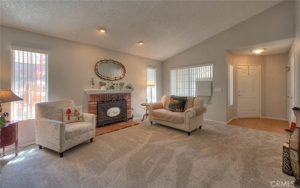 Welcome to this beautiful single-family residence! This charming home features three bedrooms, two bathrooms, and a two-car attached garage with direct access. Enjoy the fresh feel of new interior paint and brand-new carpet. The spacious living room boasts high ceilings and a cozy fireplace, creating a warm and inviting atmosphere. The kitchen offers tile flooring and a good sized dining area, perfect for everyday living and entertaining. The primary bedroom is generously sized and includes a walk-in closet. Primary bathroom with a dual-sink vanity and shower area. All bedrooms with ceiling fans for added comfort. Additional highlights include a large enclosed patio/bonus room, providing extra versatile living space. Conveniently located near shopping, dining, schools, the Victor Valley Mall, and easy access to the I-15 freeway. This home truly has it all. This home shows great and is ready for you to move in!