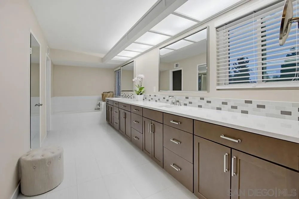 It's not just a home-it's the finest that Fletcher Hills offers! Elegance abounds in every inch of this 5 bedroom (bonus room can be bedroom 6), 3 bath home on one of the most highly coveted streets! Lush, flowering landscape greets you! To your left, the large 3 car garage and to your right, your custom putting green! Open the gorgeous front door to the formal entry and enter your breathtaking oasis! Large, open living room with oversized front window allowing for an abundance of natural light and cozy fireplace for cooler evenings! Living room flows into the separate formal dining room-ideal for family meals and gatherings! Open-concept gourmet remodeled kitchen with granite counters, top-of-the-line stainless appliances, wine refrigerator, ample cabinet and counter space, breakfast bar seating, and view out to lush backyard! Kitchen opens to big family room with another cozy fireplace and slider out to backyard! One bedroom downstairs with en-suite remodeled bath-perfect for in-law or teen! Bonus room downstairs can be the additional bedroom too! Opulent primary bedroom with serene/peaceful views and huge remodeled en-suite bath with soaking tub and extra large walk-in closet! Great sized additional bedrooms! Incredibly private backyard with 32 ft. covered patio, stunning bright flowers, and plenty of room for kid play, pets, and entertaining! Details not to miss-walk-up finished attic in garage, luxury engineered flooring, double-paned windows, paid solar +! Make this YOUR home, before someone else does! Welcome Home!