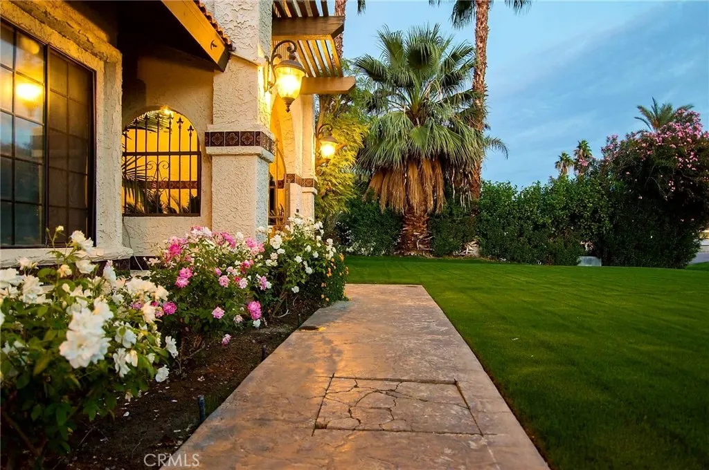 Stunning Mediterranean Estate in Bermuda Dunes Country Club | 4BD/2.5BA | 2,721 SqFt | $4,500/Month Welcome to this breathtaking Mediterranean-style home nestled in the exclusive gated community of Bermuda Dunes Country Club. From the moment you arrive, the dramatic arched entryway, warm exterior lighting, and lush manicured lawn set the tone for the elegance that awaits inside. Step through the grand entrance into an expansive open-concept living area featuring soaring vaulted ceilings, a cozy fireplace, and a large flat-screen TV — perfect for relaxing after a day in the desert sun. The generous living space flows seamlessly into the dining area, making this home ideal for both entertaining and everyday living. The gourmet kitchen is a chef's dream, boasting rich custom wood cabinetry, stunning granite countertops, a 5-burner gas cooktop island, stainless steel appliances including a built-in refrigerator, and a charming stained glass accent window that adds a one-of-a-kind artistic touch. This beautifully furnished home offers 4 spacious bedrooms and 2.5 bathrooms across 2,721 square feet of comfortable desert living. Step outside to your own private paradise — a spectacular backyard retreat complete with a sparkling pool and relaxing jacuzzi, perfect for soaking up the gorgeous Coachella Valley sunshine. Property Highlights: 4 Bedrooms | 2.5 Bathrooms | 2,721 SqFt Fully furnished — just bring your suitcase Gourmet kitchen with granite island & gas cooktop Vaulted ceilings & open-concept living Private pool & jacuzzi Lush landscaping & manicured front lawn 3-car attached garage Located in the gated Bermuda Dunes Country Club community Close to world-class golf, dining, shopping & Joshua Tree National Park Rent: $4,500/month Don't miss your opportunity to live in one of the Coachella Valley's most sought-after communities. Schedule your showing today!