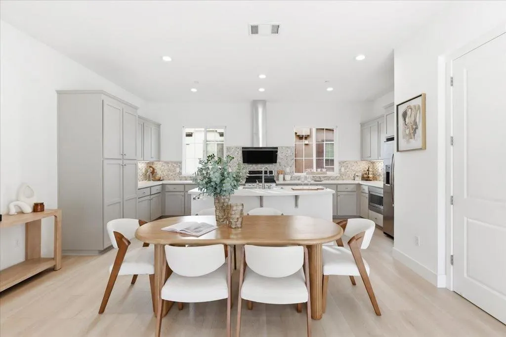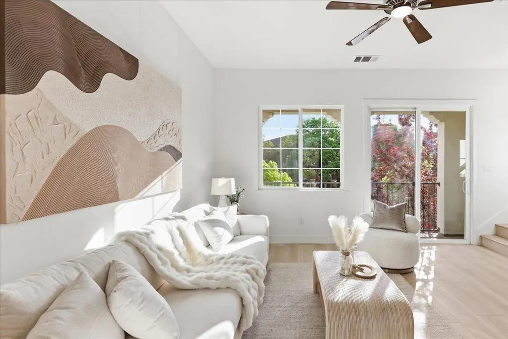 Experience modern, stylish living in this exceptional townhome located in the highly sought-after Evelyn Place community. This eight-year-old Townhome features 3 bedrooms, a first-floor office/den, and 2.5 bathrooms, offering a functional and well-designed layout. The gourmet kitchen is a chefs delight, showcasing a spacious island, ample cabinetry, and stainless steel appliances. The open-concept layout seamlessly connects the living, dining, and kitchen areasperfect for everyday living and entertaining. Upstairs, the bright primary suite includes a walk-in closet and dual-sink vanity. Recent upgrades include new interior paint, new flooring throughout, and a new dishwasher. Low HOA dues of $290 per month cover garbage service. Ideally located just minutes from major tech campuses including Google, Apple, LinkedIn, and Amazon, this home offers exceptional convenience. Enjoy walking distance to Google and Meta shuttle stops, as well as easy access to Downtown Sunnyvale, Caltrain, major freeways, Central Expressway, and Lawrence Expressway. Don't miss out on this exceptional home!