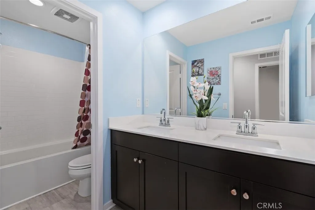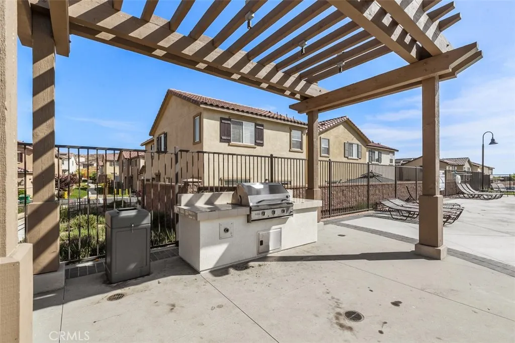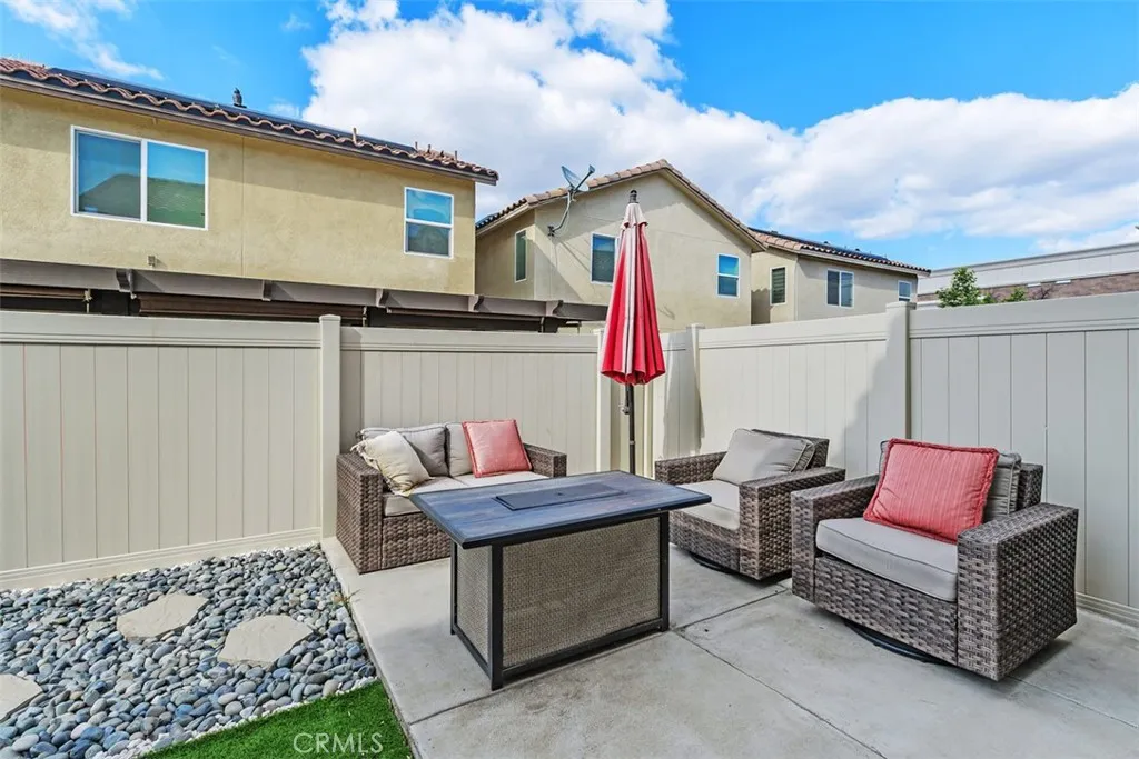 Welcome to Hyde Park, a private gated community where everything you need is five minutes away — Walmart, Target, Kohl's, LA Fitness, EOS Fitness, restaurants, and more — yet once the gate closes behind you, the noise and energy of all of it simply disappears. It's that quiet. That private. That special. Built by Beezer Homes in 2019, this is the largest model in the community — and it shows in every room. This stunning 4-bedroom, 3-bath home features an open and light-filled entry, a spacious great room flowing into a beautifully appointed kitchen with granite counters, dark cabinetry, and stainless steel appliances including a French door refrigerator. The breakfast bar and separate dining area make entertaining effortless. Four bedrooms upstairs, and not one of them will make you compromise. Little ones have room to play, teenagers have room to exist on their own terms, and out-of-town family finally has somewhere to stay that doesn't feel like a favor. The primary suite is a serene retreat with a soaking tub, dual vanities, and a walk-in shower. A walk-in closet so substantial it might just become your favorite room — because when everything has a place, mornings get a whole lot easier. A versatile flex room downstairs works perfectly as a home gym, office, or playroom. And because someone thought of everything, the laundry room is right where you need it — upstairs, close to every bedroom, with shelving that keeps your linens crisp, your towels stacked, and your life just a little more organized than it was before you moved in. The low-maintenance backyard features artificial turf, river rock landscaping, and a patio ideal for outdoor dining and relaxing evenings. Bonus: one of the few driveways in the complex that accommodates two additional vehicles. Solar is paid — enjoy dramatically lower energy bills year-round. Hyde Park amenities include a resort-style pool and spa, community barbecue area with pergola, tot lot playground, outdoor fitness stations, walking trails, and a park — all within the safety of the gated community. Easy access to the 60 freeway makes commuting a breeze. This is the home where you connect, settle in, make memories, and live better.