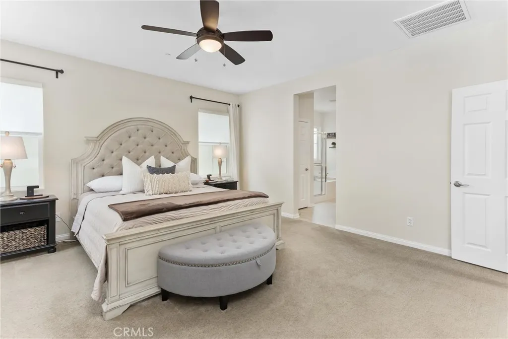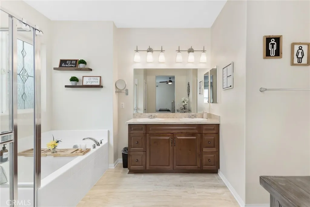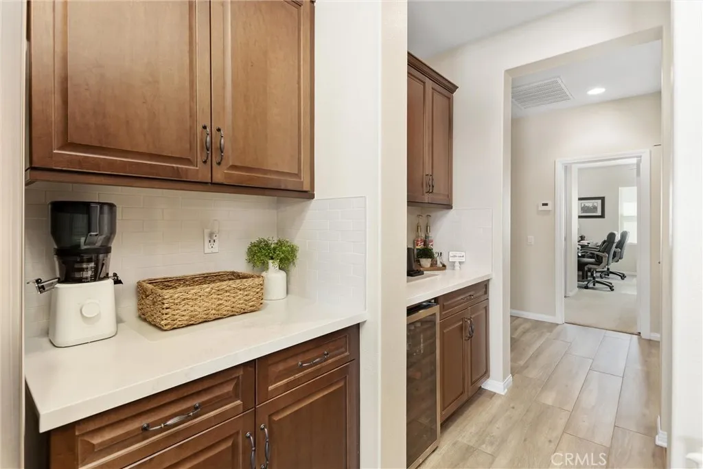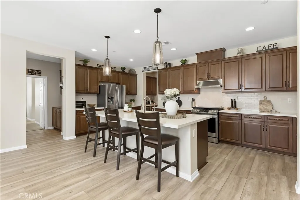 Better than new in Mahogany Hills, this single-story POOL home is the definition of model-perfect living. Immaculate, thoughtfully upgraded, and maintained with exceptional care, it offers a level of quality and presentation rarely found on the market. From the moment you arrive, the elegant front entry and striking custom door set an elevated tone. Inside, an open and airy layout unfolds—enhanced by upgraded tile flooring, 9-foot ceilings, and abundant natural light that accentuates the home’s seamless flow. Just off the foyer, a private en-suite bedroom with custom closet cabinetry provides an ideal retreat for guests or multi-generational living. A formal dining room sits adjacent, perfectly positioned for effortless entertaining. The heart of the home is the expansive family room, anchored by beautifully crafted built-in bookshelves and an entertainment center. This space opens seamlessly to the oversized kitchen and casual dining area, creating a true great-room experience. Designed for both style and function, the kitchen features a generous center island, extensive cabinetry, abundant counter space, a premium appliance package, and a butler’s pantry with wine fridge. A sliding door off the dining area extends the living space outdoors, enhancing the home’s indoor-outdoor lifestyle. Privately tucked away, the primary suite offers a serene escape—featuring a spacious walk-in closet with custom cabinetry and a beautifully finished bath. Three additional bedrooms are thoughtfully separated, providing comfort and flexibility for family or guests. A versatile office includes a custom built-in Murphy bed, ideal for work-from-home living or guest accommodations. Energy-efficient upgrades include leased solar, a tankless water heater, and a Puronics water filtration system. Step outside to the backyard that truly sets this home apart—a private pool, an exceptionally rare find in a single-story home within this community. Designed for relaxation and entertaining, the outdoor space features newly completed landscaping with premium $10K water-saving turf and a layout that encourages effortless indoor-outdoor enjoyment. Additional highlights include a 3-car tandem garage, offering valuable space for storage, a workshop, or extra parking. Located in the highly desirable Mahogany Hills community—known for its beautiful parks, miles of walking trails, mountain views, and low HOA fees—this home is not only move-in ready, it is truly exceptional in every way.