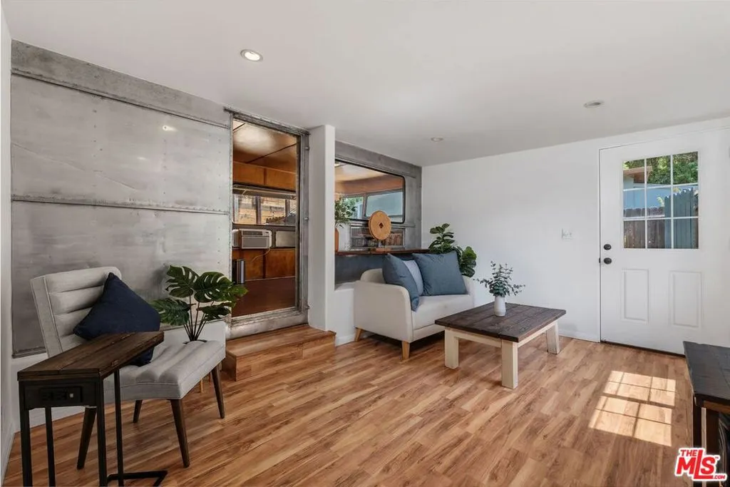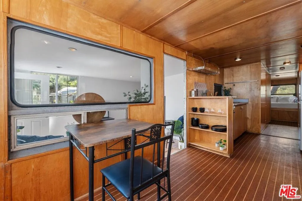 Boho-Chic Topanga Canyon Retreat. A unique, design-forward Topanga retreat blending vintage character with modern comfort. This approximately 700-square-foot residence incorporates a restored Spartan trailer, creating a distinctive two-bedroom, two-bathroom layout that offers a singular living experience. The interiors are filled with natural light and feature warm wood tones, clean finishes, a full kitchen, and two bathrooms with showers. The space feels relaxed and cohesive, with a seamless connection between the main living area and the restored trailer. Just outside, a private yard is surrounded by mature trees and lush greenery, with multiple seating areas ideal for entertaining or unwinding in a peaceful canyon setting. Located a stone's throw from Topanga Village, you'll have easy access to restaurants, a market, yoga studio, and local shops, while still enjoying the privacy and natural beauty of canyon living. Topanga State Park is just moments away for hiking and biking, along with quick access to the beach and Pacific Coast Highway. The home is part of a small, thoughtfully spaced enclave featuring a collection of classic aluminum residences (Spartan, Streamline, Silver Streak) and a tiny home, creating a quiet and unique community environment. Offered fully furnished for a turnkey Topanga living experience.