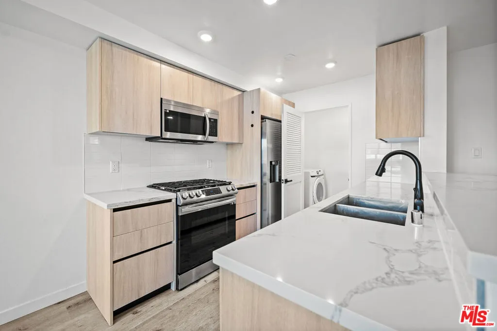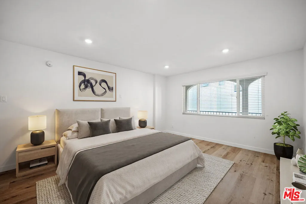 Bright and spacious penthouse unit with 3 bedrooms, 2 full bathrooms, and 3 private balconies. Prime Westwood location near shops, restaurants, UCLA, Westwood Village, Brentwood, and easy access to the 405. Enter into a spacious living room with recessed lighting and an open floor plan that combines the dining area and a designer kitchen. The primary suite has a walk-in closet and en suite bathroom. The additional bedrooms have their own closets and balconies. In unit washer and dryer. Two car tandem parking.