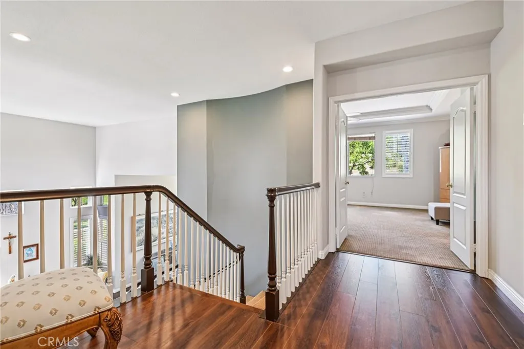 A stunning home in the prestigious Hillsborough Collection—one of the largest floor plans within this desirable gated community. Nestled in a warm, quiet neighborhood where pride of ownership is evident throughout, this home offers both elegance and comfort. Step through the grand double-door entry into an expansive living room featuring dramatic cathedral ceilings and an abundance of natural light. A separate formal dining area provides the perfect setting for gatherings, while the inviting family room, complete with its own fireplace, creates a cozy space to unwind. A true chef’s dream kitchen that is sure to impress—featuring granite countertops, stainless steel appliances, a center island, and a walk-in pantry. Enjoy serene backyard views from the kitchen sink and breakfast nook. Upstairs, the spacious and elegant primary suite offers a coffered ceiling, ceiling fan, walk-in closet, and a spa-inspired bathroom with dual vanities. A versatile bonus room provides the perfect space for a home office, media room, or playroom. A highly desirable main-floor bedroom with an adjacent full bathroom makes an ideal setup for extended family or overnight guests. The professionally landscaped front and backyard feature a variety of fruit trees and a covered patio—perfect for entertaining or relaxing outdoors. Ideally located across from Behringer Park and within walking distance to La Mirada Golf Course, this home truly offers the best of convenience and lifestyle. An entertainer’s paradise and a beautifully maintained residence—ready for you to call it your own.