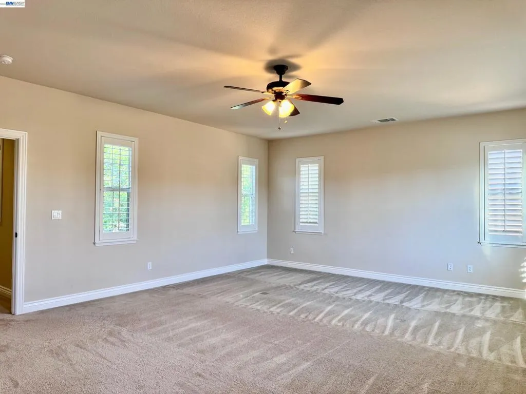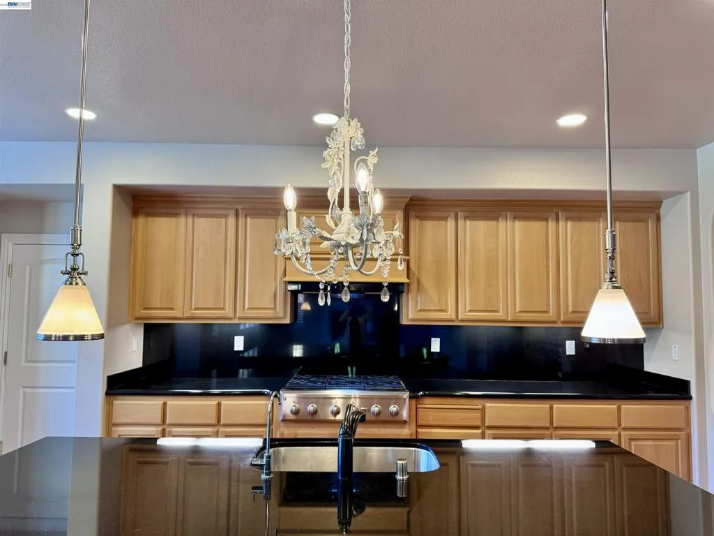 Beautifully maintained San Ramon home offering space, functionality, and scenic views. Featuring 5 bedrooms and 4.5 bathrooms, including a highly desirable downstairs suite. The home showcases elegant plantation shutters throughout and beautiful hardwood flooring downstairs, complemented by a thoughtfully designed floor plan with a formal living room with fireplace, a spacious formal dining room, and an expansive family room with a second fireplace. The gourmet kitchen is anchored by a large center island with stylish pendant lighting, complemented by a spacious walk-in pantry ideal for both daily living and entertaining. All bedrooms are generously sized, each with its own sink for added convenience. Additional highlights include a well-appointed laundry room with extensive counter space and a utility sink, plus abundant storage throughout the home. The primary suite offers dual vanities and a separate shower with a built-in seating area. Situated on a large lot with low-maintenance landscaping, the property enjoys serene hill views that enhance its peaceful setting. In addition to a long driveway, the home features an impressive 4-car garage, providing ample parking and storage. San Ramon top rated schools. Close to parks and trails.