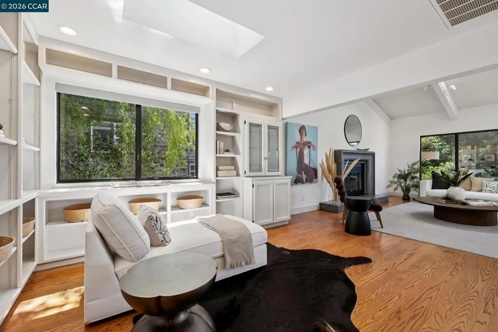 Open. Thurs. 10-1 and Sat. & Sun. 1-4. Situated in the coveted Claremont Hills, this stunning residence blends sophistication, warmth, & breathtaking natural beauty. A gated front courtyard welcomes you into a private sanctuary designed for seamless indoor outdoor living. Expansive windows & sliding glass doors frame sweeping Golden Gate Bridge and canyon views from both levels. The dramatic living room features a vaulted wood slat ceiling, stone fireplace, & flows effortlessly to the dining area and view deck, ideal for entertaining or relaxing. The gourmet eat in kitchen offers Viking appliances, farmhouse sink, walk in pantry, wine refrigerator, and breakfast bar, with direct outdoor access & sensational views. A versatile bonus room and powder room complete the main level. Downstairs, 2 beds accompany a luxurious primary suite with walk -n closet & spa-like bath. A den/optional 4th bedroom opens to a second expansive view deck. Additional features include a 2-car garage, new roof, & owned solar. Minutes to the Claremont, Peets Coffee, all the Rockridge/Elmwood amenities, UC Berkeley & more! Perched above it all, this home offers rare privacy, iconic views, and a true retreat like feel while remaining incredibly close to everything that makes Berkeley living so special.